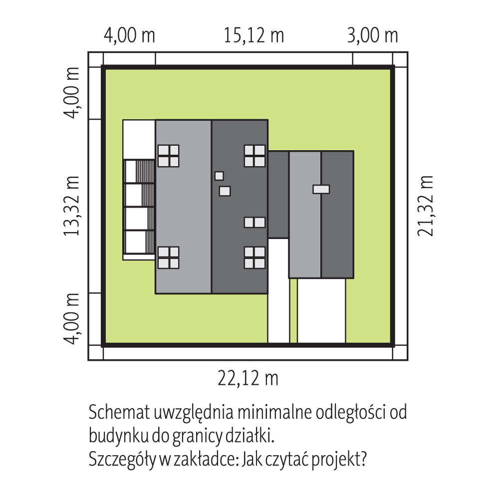 Parterowy projekt domu łączący nowoczesną estetykę z tradycyjną sprawdzoną funkcją. Biała bryła obiektu z drewnianymi akcentami na elewacji w połączeniu z grafitowym dachem i stolarką tworzy elegancką kolorystykę. Układ funkcjonalny to sprawdzony podział na strefę dzienną i nocną. Rozległy salon ze wspaniałym oknem może być miejscem wypoczynku całej rodziny. Kuchnia mimo iż połączona funkcjonalnie z salonem jest jednocześnie wizualnie wydzielona. W kuchni zaprojektowano spiżarnię. W części nocnej znajdziemy dwie sypialnie jedna z nich została zaprojektowana z oddzielną garderobą i łazienką. Na uwagę zasługuje wydzielona funkcjonalnie pralnia oraz duża kotłownia.Ściany: 2-warstwowe - bloczek silikatowy + styropian, Stropy: żelbetowe, wylewane, Dach: blacha na rąbek stojący Classic Ruukki, kąt nachylenia 35°