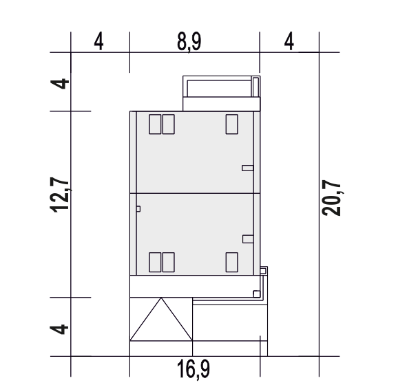 Projekt domu z poddaszem przeznaczony dla 4-osobowej rodziny. Niewielkie rozmiary oraz wysunięte ściany i zadaszenia w połączeniu z naturalnymi materiałami tworzą przytulną przestrzeń do mieszkania. Wysoki sufit na poddaszu daje pole do realizacji nietypowych pomysłów na aranżację wnętrz. Duże przeszklenia optycznie powiększają wnętrza, łącząc je z tarasem i krajobrazem. Dzięki nowoczesnej, lecz czerpiącej z tradycji formie, uzasadniona jest lokalizacja projektu zarówno w środowisku miejskim, jak i na łonie natury.Ściany: 2-warstwowe - bloczki z betonu komórkowego + wełna mineralna ISOVER, Stropy: żelbetowe, Dach: blachodachówka płaska modułowa Ruukki Hyygge, kąt nachylenia 45°