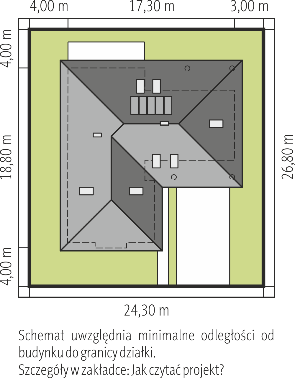 Ambrozja 14 to projekt domu parterowego z częściowym podpiwniczeniem. W projekcie widoczny jest wyraźny podział na część dzienną, nocną i gospodarczą. W części dziennej znajduje się kuchnia ze spiżarnią oraz salon z jadalnią, która została wyeksponowana dzięki dużym przeszkleniom. Z salonu oraz jadalni znajduje się wyjście na rozległy taras w części ogrodowej. Od frontu budynku zaprojektowano drugi zadaszony taras, który umożliwia spożywanie posiłków na świeżym powietrzu. Na część nocną składają się trzy sypialnie oraz rodzinna łazienka. Uzupełnieniem układu funkcjonalnego jest dwustanowiskowy garaż oraz pomieszczenia gospodarcze w piwnicy.Ściany: 2-warstwowe - pustak ceramiczny + styropian Termo Organika, Stropy: System Stropowy TECHNOBETON, Dach: dachówka ceramiczna, kąt nachylenia 30°