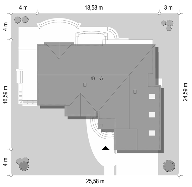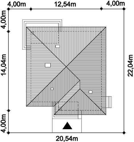 Dom jednorodzinny, niepodpiwniczony przeznaczony dla 4-osobowej rodziny. Dom o prostej, zwartej bryle, łatwy w budowie i ekonomiczny w utrzymaniu. Na parterze znajduje się sypialnia z osobną łazienką. Na poddaszu znajdują się trzy sypialnie z łazienką i pralnią.Ściany: 2-warstwowe - pustak ceramiczny + styropian, Stropy: żelbetowe, wylewane, Dach: dachówka, kąt nachylenia 42°