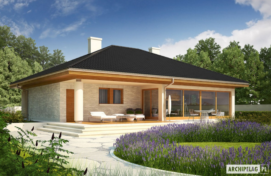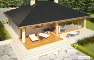 Charakterystyka: Dom parterowy, niepodpiwniczony, z garażem jednostanowiskowym Przeznaczenie: Dom dla 3-4 osobowej rodziny Technologia i konstrukcja: Ściany zewnętrzne: murowane, Strop: gęstożebrowy Dach: konstrukcja drewniana, dachówka ceramiczna lub cementowa. Więźba dachowa dostępna również w systemie prefabrykacji drewnianej.Rozwiązania instalacyjne: Ogrzewanie: kocioł gazowy, rozprowadzenie ciepła: grzejniki Wentylacja: grawitacyjna Wykończenie: Elewacje: tynk mineralny oraz okładzina klinkierowa, cokół kamienny Stolarka: drewniana lub PCV, drzwi wejściowe i brama garażowa firmy HörmannWersje - zapytaj o dostępność: - Alan III G2 – z garażem dwustanowiskowym - Alan – z inną aranżacją parteru, bez poddasza, z garażem jedno- lub dwustanowiskowym - Alan II – z inną aranżacją parteru, z poddaszem, z garażem jedno- lub dwustanowiskowym - Alan IV – z inną aranżacją parteru, z poddaszem , z garażem jedno- lub dwustanowiskowym - Odbicia lustrzane do wszystkich wersji Istnieje techniczna możliwość: - podpiwniczenia - zbliźniaczenia - wykonania domu dwulokalowego