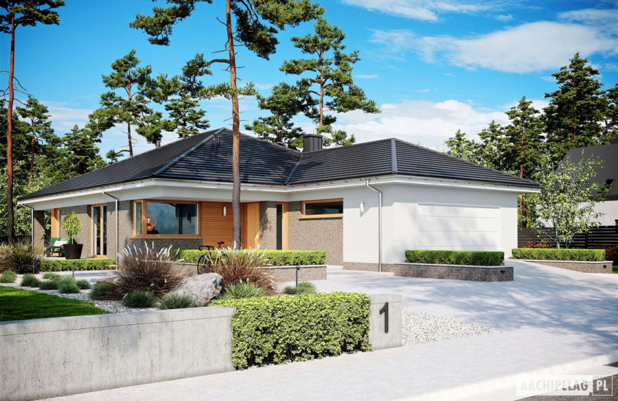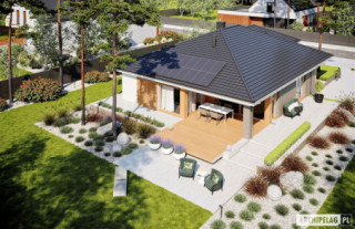 Charakterystyka: Dom parterowy, niepodpiwniczony, z garażem dwustanowiskowymPrzeznaczenie: Dom dla 3-4-osobowej rodziny Technologia i konstrukcja:Ściany zewnętrzne: murowane, dwuwarstwowe, beton komórkowy firmy H+H 24 cm, ocieplenie styropian Termo Organika 20 cmŚciany wewnętrzne: nośne i działowe murowane, beton komórkowy firmy H+H 24 cm i 12 cmStrop: gęstożebrowy Teriva, ocieplenie wełna mineralna Isover 30 cmDach: konstrukcja drewniana, dachówka ceramiczna płaska Bergamo firmy Röben, więźba dachowa dostępna również w prefabrykacji drewnianej w systemie płytki kolczastej Mitek Rozwiązania instalacyjne:Ogrzewanie: kocioł gazowy kondensacyjny firmy Viessmann, rozprowadzenie ciepła: grzejniki firmy PurmoWentylacja: grawitacyjna OZE: kolektory słoneczneWykończenie:Elewacje: tynk cienkowarstwowy mineralny w kolorze białym TO-PA001 z palety firmy Termo Organika, okładzina klinkierowa typ CALAIS firmy Röben oraz okładzina drewnianaStolarka: aluminiowa firmy Reynaers Aluminium lub drewniana, żaluzje przeciwsłoneczne firmy BeClever, drzwi wejściowe i brama garażowa firmy HörmanOkna połaciowe: świetlik dachowy firmy VELUXOtoczenie: kostka betonowa i płyty tarasowe firmy Libet, system tarasowy ProDeck - deska kompozytowa Terra w kolorze orzechWersje - zapytaj o dostępność: - Alison – inne warianty garaży - Alison II – inna strefa wejściowa, zadaszone wejście, dom parterowy, mniejsza powierzchnia użytkowa, 3 sypialnie, dach o kącie nachylenia 25° - Alison III – dom parterowy, większa powierzchnia użytkowa, 4 sypialnie, dach o kącie nachylenia 25° - Alison IV – dom z poddaszem do adaptacji, podobna powierzchnia użytkowa, 3 sypialnie, dach o kącie nachylenia 30° - Alison V – dom z poddaszem użytkowym, większa powierzchnia użytkowa, 4 sypialnie + gabinet, dach o kącie nachylenia 30° - wszystkie wersje o podobnym układzie funkcji oraz z inną propozycją wykończenia elewacji - wszystkie wersje z trzema wariantami garaży: bez garażu, z garażem jedno- i dwustanowiskowym - odbicie lustrzane do każdej wersjiWszystkie wersje domów możliwe w dwóch standardach/wariantach instalacyjnych: - ENERGO: piec gazowy kondensacyjny, grzejniki, wentylacja grawitacyjna - ENERGO PLUS: pompa ciepła, ogrzewanie podłogowe, wentylacja mechaniczna, dodatkowo system solarny lub panele fotowoltaiczne Istnieją techniczne możliwości wykonania zmian: - podpiwniczenia budynku - zmiany kąta nachylenia dachu do 30° lub 35° i adaptacji poddasza na cele mieszkalne - wykonania budynku w technologii szkieletowej - dokonania zmian funkcjonalnych wg indywidualnych wymagań Warianty działek dla wersji domu z garażem jednostanowiskowym i bez garażu: