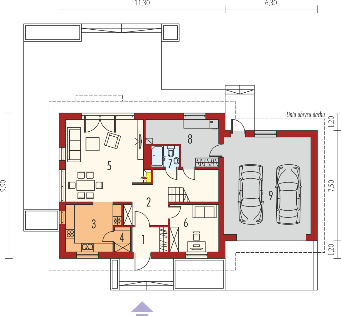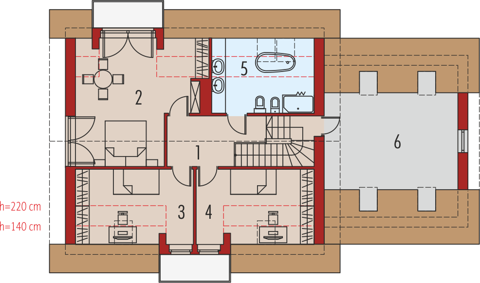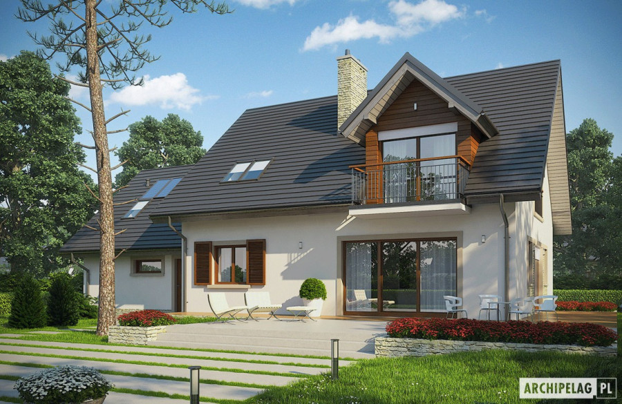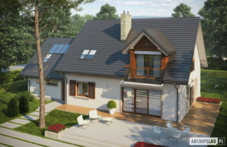 Dom w technologii Leca® KERAMZYTCharakterystyka: Dom parterowy z poddaszem użytkowym, niepodpiwniczony, z garażem dwustanowiskowymPrzeznaczenie: Dom dla 3-5-osobowej rodziny Technologia i konstrukcja:Fundamenty: ławy, bloczki keramzytobetonowe bloczki Leca® BLOK fundamentowy 24 cm, ocieplenie Leca® KERAMZYT izolacyjny LŚciany zewnętrzne: murowane, dwuwarstwowe, keramzytobetonowe Pustaki Leca® BLOK 24, ocieplenie wełna mineralna 20 cmŚciany wewnętrzne: murowane, keramzytobetonowe Pustaki Leca® BLOK 24, ścianki działowe keramzytobetonowe Pustaki Leca® BLOK 12 cmPodłoga na gruncie: płyta betonowa, na podłożu z Leca® KERAMZYTU impregnowanegoStrop: strop międzypiętrowy gęstożebrowy TerivaDach: konstrukcja drewniana, ocieplenie wełna mineralna 30 cm, dachówka płaska lub inna o podobnych parametrachIzolacje termiczne i akustyczne: wełna mineralna, Leca® KERAMZYTHydroizolacje: technologia Weber DeitermannZaprawy, tynki, wylewki: gotowe zaprawy budowlane WeberInne: schody wewnętrzne drewniane, system tarasowy ProDeck - deska kompozytowa Terra w kolorze orzechRozwiązania instalacyjne:Ogrzewanie: kocioł gazowy, rozprowadzenie ciepła: grzejnikiWentylacja: grawitacyjna Wykończenie:Elewacje: tynk cienkowarstwowy silikatowo-silikonowy, okładzina drewniana i kamiennaStolarka: drewniana, PVC lub aluminiowa, rolety zewnętrzne np. w systemie CleverBox firmy BeCleverOkna połaciowe: rozwiązania technologiczne np. firmy VELUXInne: okiennice ozdobne drewniane Wersje - zapytaj o dostępność:- Amaranta ENERGO – taki sam układ funkcjonalny, bez garażu lub z garażem jednostanowiskowym- Amaranta G2 MULTI-COMFORT - taki sam układ funkcjonalny, dom z rozwiązaniami technologiczno-materiałowymi Grupy Saint-Gobain, różne wersje garaży- Amaranta II G2 ENERGO – taki sam układ funkcjonalny, system suchej zabudowy Rigips, różne wersje garaży- Odbicie lustrzane do każdej wersji Istnieje techniczna możliwość:- podpiwniczenia budynku Atuty projektu okiem architekta:- Klasyczna forma domu z nowoczesnym wykończeniem elewacji- Funkcjonalne i ergonomiczne wnętrze z podziałem na strefę dzienną na parterze i nocną na poddaszu- Wszystkie sypialnie na poddaszu z wyjściem na balkon- Duże przeszklenia w salonie od strony ogrodu- Garaż oddzielony termicznie od ogrzewanej części budynku- Przestronna strefa gospodarcza: pomieszczenie kotłowni- Duże pomieszczenie kotłowni pozwala na zastosowanie dowolnego źródła ogrzewania