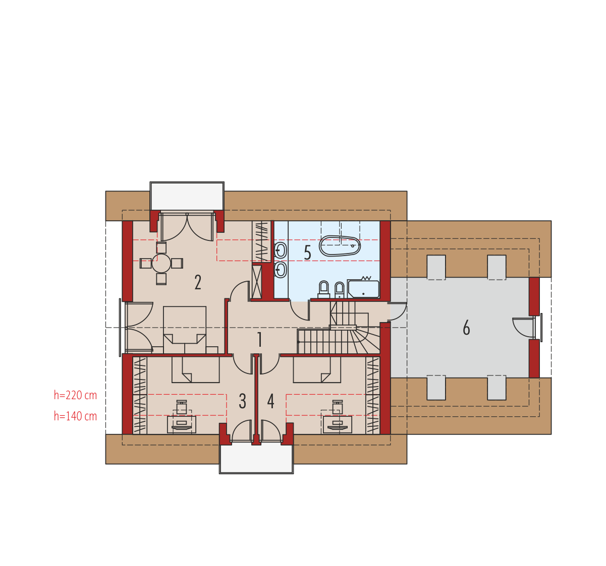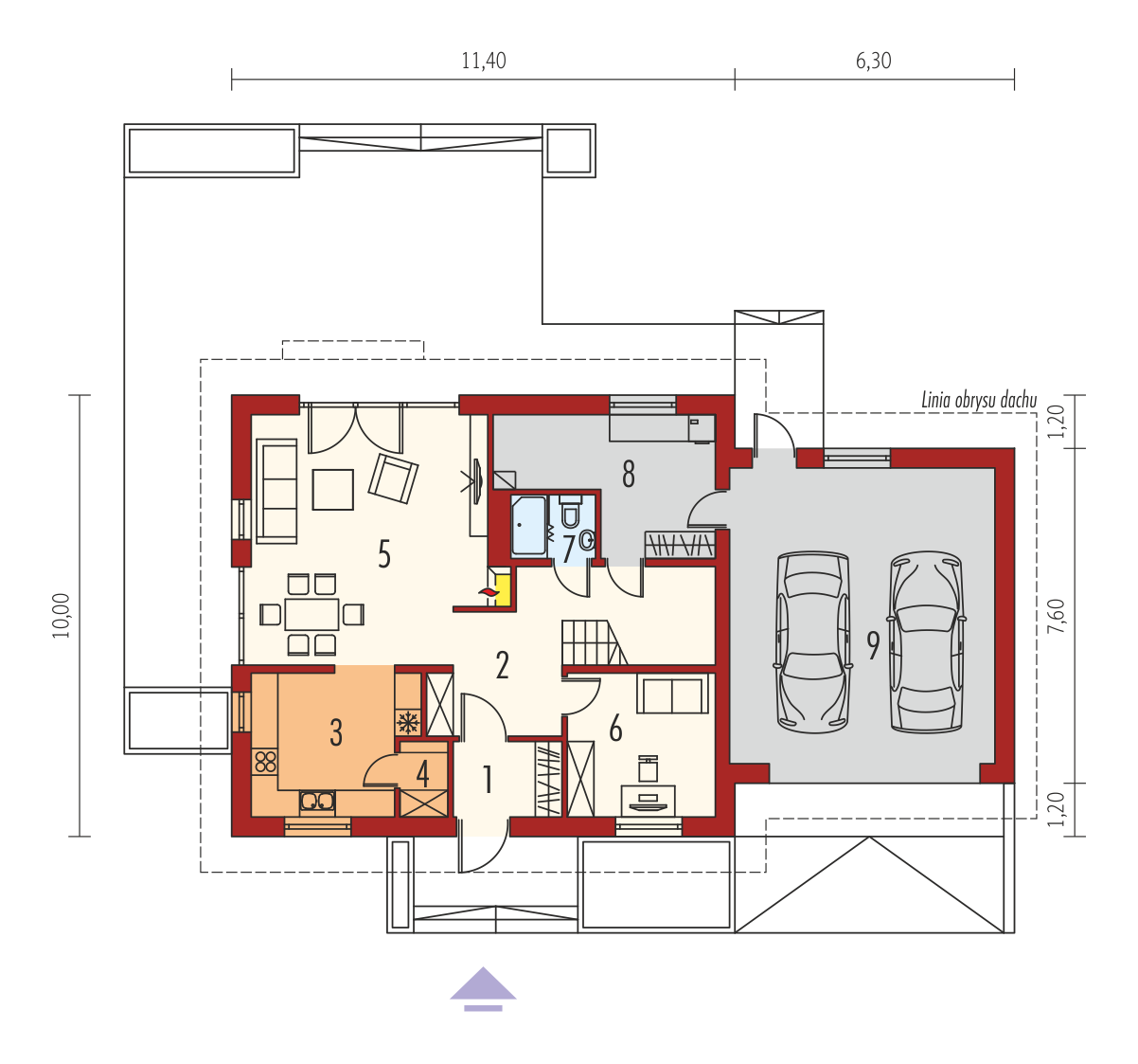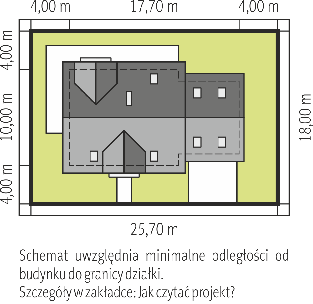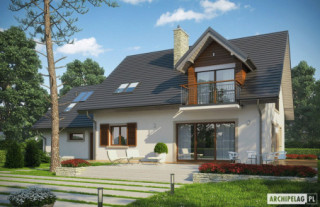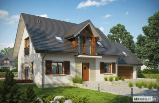 Standard MULTI-COMFORT:Dom spełnia standard MULTI-COMFORT Grupy Saint-Gobain. Komfort rozumiany jako wpływ środowiska, w którym mieszkamy na nasze samopoczucie i zdrowie. Dom realizuje tę ideę za pomocą właściwego połączenia wszystkich elementów funkcjonujących w budynku – odpowiedniego oświetlenia, właściwej wentylacji, konstrukcji ścian, dachu oraz instalacji, przy jednoczesnej trosce o środowisko naturalne. Najwyższą jakość produktów Saint-Gobain zapewniają marki: ISOVER, Rigips, Ecophon, PAM, Weber, Glass oraz Glasssolution. Charakterystyka: Dom parterowy z poddaszem użytkowym, niepodpiwniczony, z garażem jednostanowiskowymPrzeznaczenie: Dom dla 3-5-osobowej rodzinyTechnologia i konstrukcja:Fundamenty: ławy, bloczki betonowe 24 cm, ocieplenie styropian 15 cmŚciany zewnętrzne: murowane, dwuwarstwowe, beton komórkowy 24 cm, ocieplenie 25 cmŚciany wewnętrzne: murowane, cegła wapienno-piaskowa, ściany nośne 24 cm, ścianki działowe 12 cmPodłoga na gruncie: płyta betonowa, ocieplenie wełna mineralna 20 cmStrop i stropodach nad garażem: strop międzypiętrowy gęstożebrowy TerivaDach: konstrukcja drewniana, ocieplenie wełna mineralna 30 cm, dachówka płaska lub inna o podobnych parametrachRozwiązania instalacyjne: Ogrzewanie: kocioł gazowy, rozprowadzenie ciepła: grzejniki Wentylacja: grawitacyjna Wykończenie:Elewacja: tynk cienkowarstwowy mineralny i okładzina drewniana i kamiennaStolarka: drewniana, PCV lub aluminiowa, rolety zewnętrzne naokienneInne: ozdobne okiennice drewnianeWersje - zapytaj o dostępność:- Amaranta ENERGO – taki sam układ funkcjonalny, bez garażu i z garażem jednostanowiskowym- Amaranta G2 Leca(R) DOM – dom w technologiiLeca(R) KERAMZYTU- Amaranta II G2 ENERGO – taki sam układ funkcjonalny, system suchej zabudowy Rigips, inne wykończenie elewacji, różne wersje garaży- Odbicie lustrzane do każdej wersjiIstnieje techniczna możliwość:- podpiwniczenia budynku- zbliźniaczenia Atuty projektu okiem architekta:- W projekcie zastosowano rozwiązania technologiczne Grupy Saint-Gobain- Tradycyjna forma budynku z modną kompozycją materiałów zastosowanych na elewacji- Wysoka energooszczędność i znakomite parametry cieplne- Funkcjonalne i ergonomiczne rozwiązanie wnętrza- Obszerna kuchnia z podręczną spiżarnią- Komfortowy salon z bezpośrednim wyjściem na przestronny taras ogrodowy- Gabinet do pracy usytuowany na parterze- Strefa nocna zaplanowana na poddaszu- Wszystkie sypialnie posiadają możliwość wyjścia na balkon- Dwustanowiskowy garaż oddzielony termicznie od ogrzewanej części budynku- Przestronny i praktyczny strych nad garażem- Duże pomieszczenie kotłowni pozwala na zastosowanie dowolnego źródła ogrzewania