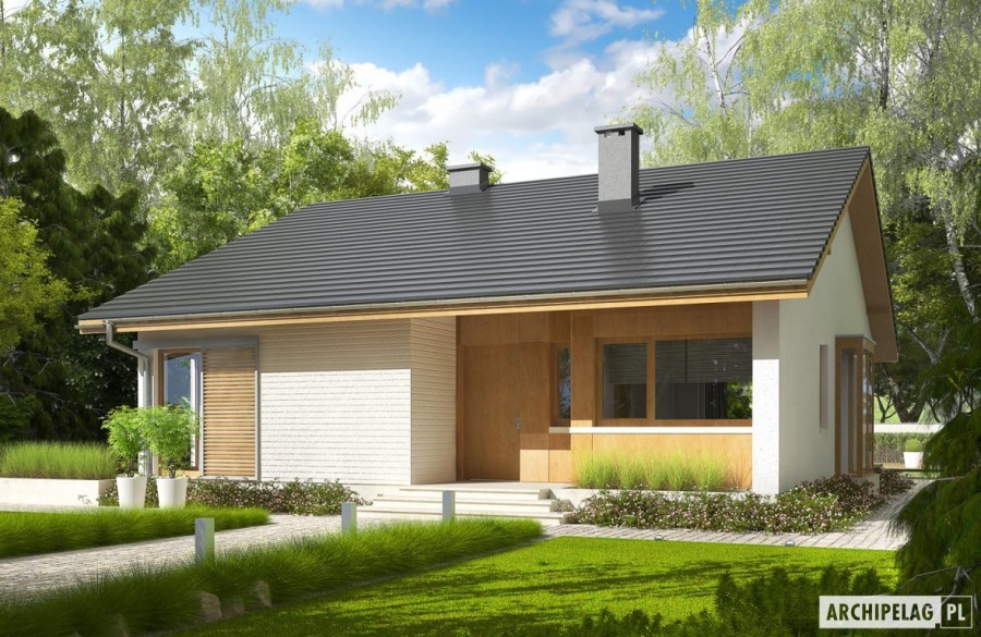 Dom z Kolekcji BiancoErgonomia – Ekonomia – Funkcjonalność – Czysta forma – GlamourDomy z Kolekcji Bianco zostały zaprojektowane z najwyższą troską o ergonomię i komfort użytkowy. W każdym projekcie z Kolekcji Bianco zminimalizowano ilość pionów instalacyjnych. Zgrupowanie w bliskim sąsiedztwie pomieszczeń, do których konieczne jest doprowadzenie wody, kanalizacji oraz systemu wentylacji pozwala ograniczyć koszty związane z wykonaniem instalacji wewnętrznych oraz dodatkowych pionów wentylacyjnych. W domach z Kolekcji Bianco strefa dzienna jest wyraźnie oddzielona od części gospodarczej i sanitarnej, co podnosi komfort użytkowy, a dodatkowo akcentuje reprezentacyjny charakter. Strefę nocną zaprojektowano z dbałością o jej intymny charakter. W Kolekcji Bianco dominuje ascetyczna wizja piękna – prosta, czysta, doskonała.Charakterystyka: Dom parterowy, niepodpiwniczony Przeznaczenie: Dom dla 2-3-osobowej rodziny Technologia i konstrukcja: Ściany zewnętrzne: murowane Strop: międzypiętrowy gęstożebrowy Dach: konstrukcja drewniana, ocieplenie wełna mineralna, dachówka cementowa IBFRozwiązania instalacyjne: Ogrzewanie: kocioł gazowy, rozprowadzenie ciepła: grzejniki Wentylacja: grawitacyjna Wykończenie: Elewacje: tynk mineralny z okładziną kamienną, i drewnianą Stolarka: drewniana lub PCV, drzwi wejściowe firmy HörmannWersje - zapytaj o dostępność:- Rafael - podobny układ funkcji, 2 sypialnie, mniejsza powierzchnia użytkowa, dach o kącie nachylenia 28°, bez garażu - Rafael G1 – wersja z garażem jednostanowiskowym, podobny układ funkcji, 2 sypialnie, mniejsza powierzchnia użytkowa, dach o kącie nachylenia 25°- Rafael G1 (bliźniak) – wariant w zabudowie bliźniaczej - Rafael II G1 – wariant z garażem jednostanowiskowym - Rafael III – podobny układ funkcji, jadalnia bez wykusza, bez garażu i z garażem jednostanowiskowym - Rafael IV – dom z rozwiązaniami firmy Rigips i wiązarami prefabrykowanymi, podobny układ funkcji, standard ociepleń ENERGO, bez garażu i z garażem jednostanowiskowym - Rafael V – dom ze ścianami trójwarstwowymi, taki sam układ funkcji, 2 sypialnie, mniejsza powierzchnia użytkowa, dach o kącie nachylenia 28°, bez garażu i z garażem jednostanowiskowym - Rafael VI ECONOMIC – podobny układ funkcji, 2 sypialnie, mniejsza powierzchnia użytkowa, standard ociepleń ENERGO, dach o kącie nachylenia 28°, bez garażu i z garażem jednostanowiskowym- Rafael G1 (30 st), Rafael II (30 st), Rafael III (30 st), Rafael III G1 (30 st), Rafael IV G1 (30 st), Rafael VI ECONOMIC (30 st) – warianty z dachami o kącie nachylenia 30° - każda wersja z inną propozycją wykończenia elewacji - odbicie lustrzane do każdej wersjiIstnieje techniczna możliwość: - podpiwniczenia - wykonania budynku w technologii szkieletowej - zmiany kąta nachylenia dachu do 30° oraz adaptacji poddasza na strych