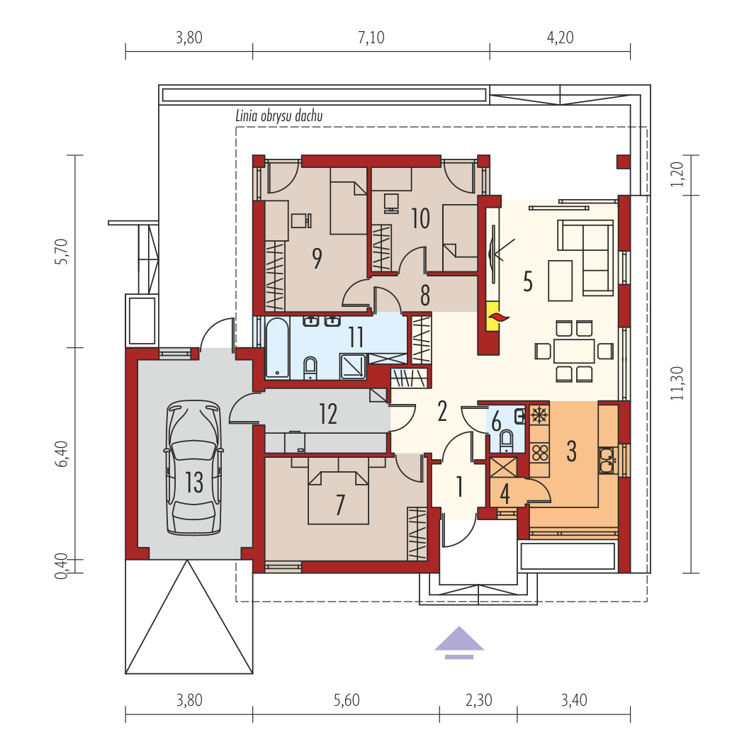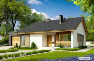 Uwaga! Przedstawione wizualizacje prezentują wersję domu z dachem o kącie nachylenia 25°Charakterystyka: Dom parterowy, niepodpiwniczonyPrzeznaczenie: Dom dla 3-4-osobowej rodziny Technologia i konstrukcja:Ściany zewnętrzne: murowane, jednowarstwowe, beton komórkowy 36,5 cmŚciany wewnętrzne: nośne i działowe murowane, cegła wapienno-piaskowa 24 cm i 12 cmStrop: gęstożebrowy Teriva, ocieplenie wełna mineralna 25 cmDach: konstrukcja drewniana, ocieplenie wełna mineralna 30 cm, dachówka cementowa IBF, więźba dachowa dostępna również w prefabrykacji drewnianej w systemie płytki kolczastej Mitek Rozwiązania instalacyjne:Ogrzewanie: kocioł gazowy kondensacyjny, rozprowadzenie ciepła: grzejnikiWentylacja: grawitacyjna Wykończenie:Elewacje: tynk cienkowarstwowy mineralny, okładzina drewnianaStolarka: drewniana, PVC lub aluminiowa, drzwi wejściowe i brama garażowa firmy HörmannOtoczenie: płyty tarasowe firmy Libet, system tarasowy ProDeck - deska kompozytowa Terra w kolorze orzech Wersje - zapytaj o dostępność:Wersje z mniejszymi kątami nachylenia dachu: - Rafael - podobny układ funkcji, 2 sypialnie, mniejsza powierzchnia użytkowa, dach o kącie nachylenia 28°, bez garażu - Rafael G1 - podobny układ funkcji, 2 sypialnie, mniejsza powierzchnia użytkowa, dach o kącie nachylenia 25°, z garażem jednostanowiskowym- Rafael G1 (bliźniak) – wariant w zabudowie bliźniaczej - Rafael II – podobny układ funkcji, 2 sypialnie, jadalnia z wykuszem, dach o kącie nachylenia 25°, bez garażu i z garażem jednostanowiskowym - Rafael III – wersja bez garażu i z garażem jednostanowiskowym - Rafael IV – dom z rozwiązaniami firmy Rigips i wiązarami prefabrykowanymi, takie sam układ funkcji, standard ociepleń ENERGO, dach o kącie nachylenia 25°, bez garażu i z garażem jednostanowiskowym - Rafael V – dom ze ścianami trójwarstwowymi, podobny układ funkcji, 2 sypialnie, mniejsza powierzchnia użytkowa, dach o kącie nachylenia 28°, bez garażu i z garażem jednostanowiskowym - Rafael VI ECONOMIC – podobny układ funkcji, 2 sypialnie, mniejsza powierzchnia użytkowa, standard ociepleń ENERGO, dach o kącie nachylenia 28°, bez garażu i z garażem jednostanowiskowymWersje z z dachami o kącie nachylenia 30°:- Rafael G1 (30 st), Rafael II (30 st), Rafael III (30 st), Rafael IV G1 (30 st), Rafael VI ECONOMIC (30 st) - każda wersja z inną propozycją wykończenia elewacji - odbicie lustrzane do każdej wersjiIstnieje techniczna możliwość:- podpiwniczenia budynku- wykonania budynku w technologii szkieletowej