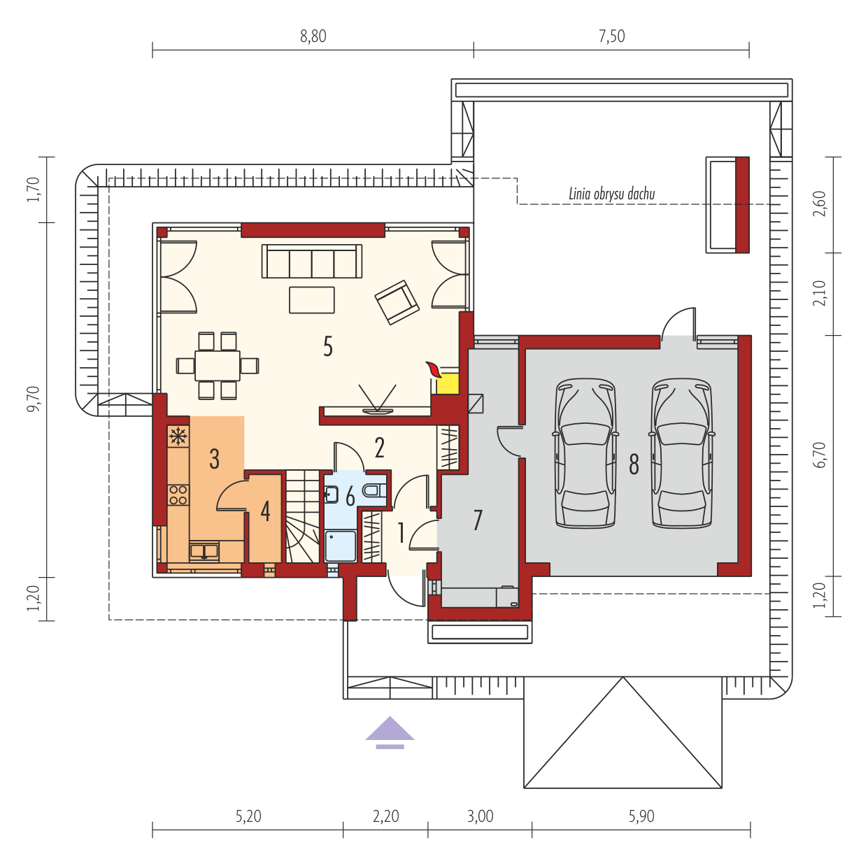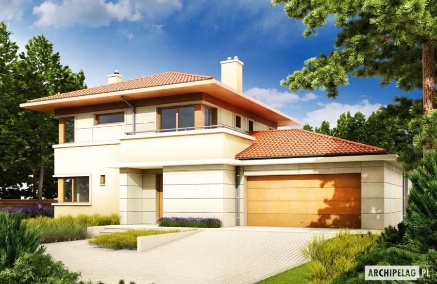 Dom w technologii Leca® KERAMZYT Charakterystyka: Dom piętrowy, niepodpiwniczony, z garażem dwustanowiskowymPrzeznaczenie: Dom dla 3-4-osobowej rodziny Technologia i konstrukcja:Fundamenty: ławy, bloczki keramzytobetonowe bloczki Leca® BLOK fundamentowy 24 cm, ocieplenie Leca® KERAMZYT izolacyjny LŚciany zewnętrzne: murowane, dwuwarstwowe, keramzytobetonowe Pustaki Leca® BLOK 24, ocieplenie wełna mineralna 20 cmŚciany wewnętrzne: murowane, keramzytobetonowe Pustaki Leca® BLOK 24, ścianki działowe keramzytobetonowe Pustaki Leca® BLOK 12 cmPodłoga na gruncie: płyta betonowa, na podłożu z Leca® KERAMZYTU impregnowanegoStrop: strop międzypiętrowy gęstożebrowy TerivaDach: konstrukcja drewniana, ocieplenie wełna mineralna 30 cm, dachówka ceramiczna lub cementowaIzolacje termiczne i akustyczne: wełna mineralna, Leca® KERAMZYTHydroizolacje: technologia Weber DeitermannZaprawy, tynki, wylewki: gotowe zaprawy budowlane WeberInne: schody wewnętrzne drewniane Rozwiązania instalacyjne:Ogrzewanie: kocioł gazowy, rozprowadzenie ciepła: grzejnikiWentylacja: grawitacyjna Wykończenie:Elewacje: tynk cienkowarstwowy silikatowo-silikonowy, okładzina kamiennaStolarka: drewniana, PVC lub aluminiowa Wersje w serii Rodrigo - zapytaj o dostępność: - Rodrigo G2 Leca®DOM – dom w technologii Leca® KERAMZYT - Rodrigo II – dom w technologii murowanej z betonu komórkowego i cegły wapienno-piaskowej - Rodrigo III - inne wykończenie elewacji - Rodrigo IV – dom w technologii ścian trójwarstwowych z ceramiki poryzowanej - Rodrigo G2 Multi-Comfort - dom w standardzie Multi-Comfort Grupy Saint-Gobain- wszystkie wersje o podobnym układzie funkcji oraz z inną propozycją wykończenia elewacji - różne warianty garaży dla każdej wersji - odbicie lustrzane do każdej wersjiWszystkie wersje domów możliwe w dwóch standardach/wariantach instalacyjnych: - ENERGO: kocioł gazowy kondensacyjny, grzejniki, wentylacja grawitacyjna, OZE: kolektory słoneczne - ENERGO PLUS: pompa ciepła, ogrzewanie podłogowe, wentylacja mechaniczna, OZE: kolektory słoneczne lub panele fotowoltaiczneIstnieją techniczne możliwości wykonania zmian:- podpiwniczenia budynku Atuty projektu okiem architekta:- Zadaszenie nad wejściem do budynku jako osłona przed wiatrem i śniegiem- Kuchnia otwarta na jadalnię i salon, z wydzieloną praktyczną spiżarnią- Słoneczny i reprezentacyjny salon z kominkiem- Przestronny, częściowo zadaszony taras umilający czas w ciepłe dni- Duże i reprezentacyjne przeszklenia w salonie z trzech stron świata- Trzy duże, wygodne sypialnie, w tym główna z własną garderobą- Praktyczne pomieszczenie gospodarcze na piętrze- Duża kotłownia pozwala na zastosowanie dowolnego źródła ogrzewania- Garaż oddzielony termicznie od ogrzewanej części budynku