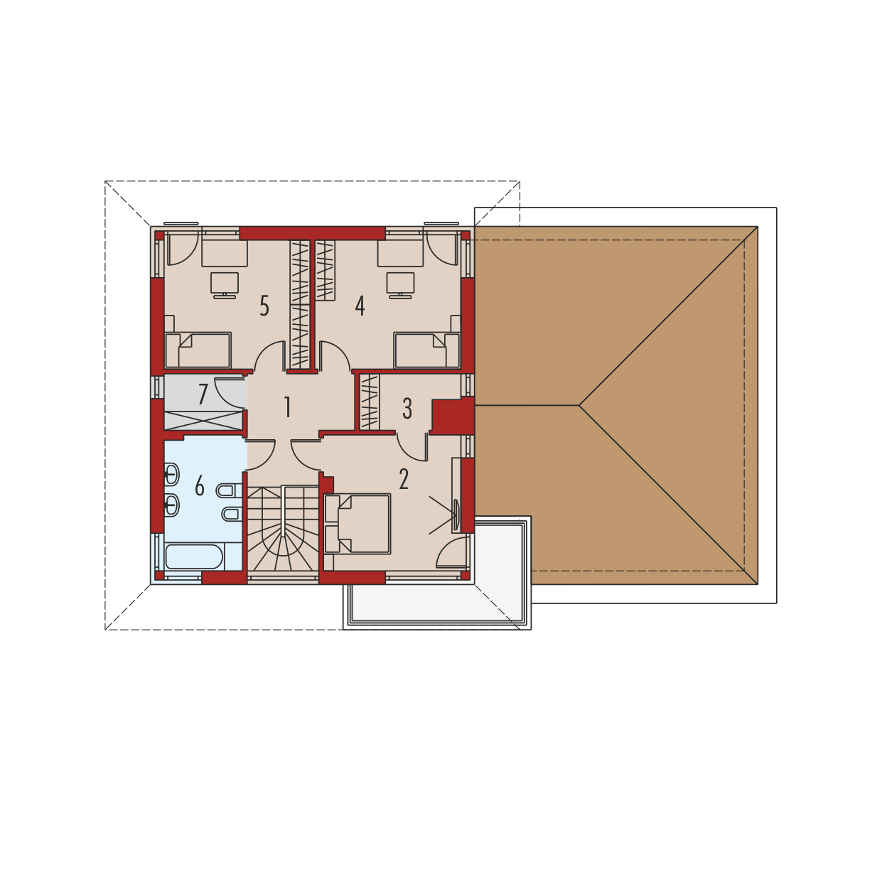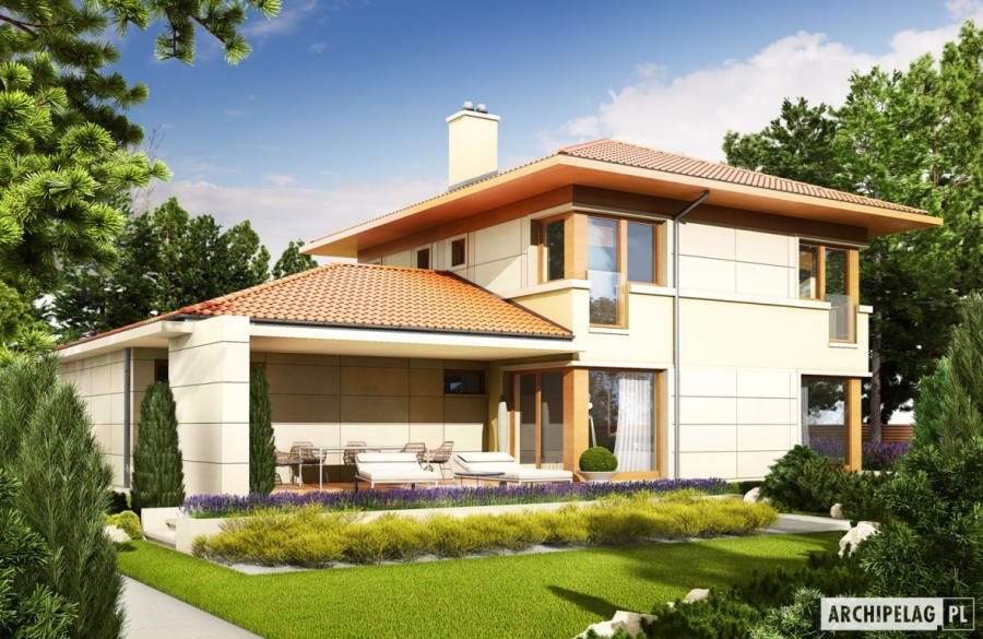 Standard MULTI-COMFORTDom spełnia standard MULTI-COMFORT Grupy Saint-Gobain.Komfort rozumiany jako wpływ środowiska, w którym mieszkamy na nasze samopoczucie i zdrowie. Dom realizuje tę ideę za pomocą właściwego połączenia wszystkich elementów funkcjonujących w budynku – odpowiedniego oświetlenia, właściwej wentylacji, konstrukcji ścian, dachu oraz instalacji, przy jednoczesnej trosce o środowisko naturalne. Najwyższą jakość produktów Saint-Gobain zapewniają marki: ISOVER, Rigips, Ecophon, PAM, Weber, Glass oraz Glasssolution. Charakterystyka: dom piętrowy, niepodpiwniczony, z garażem dwustanowiskowymPrzeznaczenie: dom dla 4-5-osobowej rodzinyTechnologia i konstrukcja: Ściany zewnętrzne: murowane, ściany zewnętrzne dwuwarstwowe, docieplenie grubości 25 cm Strop: gęstożebrowy Dach: konstrukcja drewniana, ocieplenie wełna mineralna, dachówka cementowa. W projekcie zastosowano rozwiązania technologiczne grupy Saint-Gobain. Inne: Schody wewnętrzne drewnianeRozwiązania instalacyjne: Ogrzewanie: kocioł gazowy, rozprowadzenie ciepła: grzejniki Wentylacja: grawitacyjna Wykończenie: Elewacje: tynk mineralny oraz okładzina kamienna, ceramiczna lub drewniana. Cokół kamienny Stolarka: drewniana, PCV lub aluminiowaWersje w serii Rodrigo - zapytaj o dostępność: - Rodrigo G2 Leca®DOM – dom w technologii Leca® KERAMZYT - Rodrigo II – dom w technologii murowanej z betonu komórkowego i cegły wapienno-piaskowej - Rodrigo III - inne wykończenie elewacji - Rodrigo IV – dom w technologii ścian trójwarstwowych z ceramiki poryzowanej - Rodrigo G2 Multi-Comfort - dom w standardzie Multi-Comfort Grupy Saint-Gobain- wszystkie wersje o podobnym układzie funkcji oraz z inną propozycją wykończenia elewacji - różne warianty garaży dla każdej wersji - odbicie lustrzane do każdej wersjiWszystkie wersje domów możliwe w dwóch standardach/wariantach instalacyjnych: - ENERGO: kocioł gazowy kondensacyjny, grzejniki, wentylacja grawitacyjna, OZE: kolektory słoneczne - ENERGO PLUS: pompa ciepła, ogrzewanie podłogowe, wentylacja mechaniczna, OZE: kolektory słoneczne lub panele fotowoltaiczneIstnieją techniczne możliwości wykonania zmian:- podpiwniczenia budynku Atuty projektu okiem architekta:- Optymalny współczynnik kształtu budynku A/V sprzyjający energooszczędności- Okna o niskim współczynniku przenikania ciepła- Bryła sprzyjająca energooszczędności, zminimalizowane ryzyko występowania mostków termicznych- Znakomite parametry cieplne- Eleganckie wykończenie elewacji wzbogacone o ciekawe detale architektoniczne- Kuchnia z praktyczną spiżarnią- Reprezentacyjny salon z kominkiem oferujący wiele możliwości aranżacji- Ergonomiczny układ funkcjonalny i czytelny podział na strefy- Komfortowa strefa nocna zaplanowana na poddaszu- Atrakcyjny taras dostępny z sypialni rodziców- Szerokie przeszklenia pozwalające na dopływ pasywnej energii słonecznej- Duży, częściowo zadaszony taras- Duża kotłownia pozwala na zainstalowanie dowolnego źródła ogrzewania- Garaż oddzielony termicznie od ogrzewanej części budynku