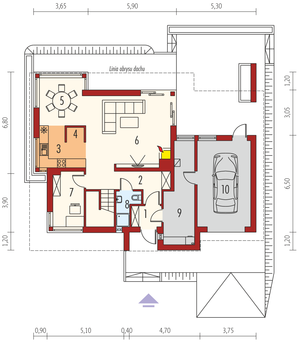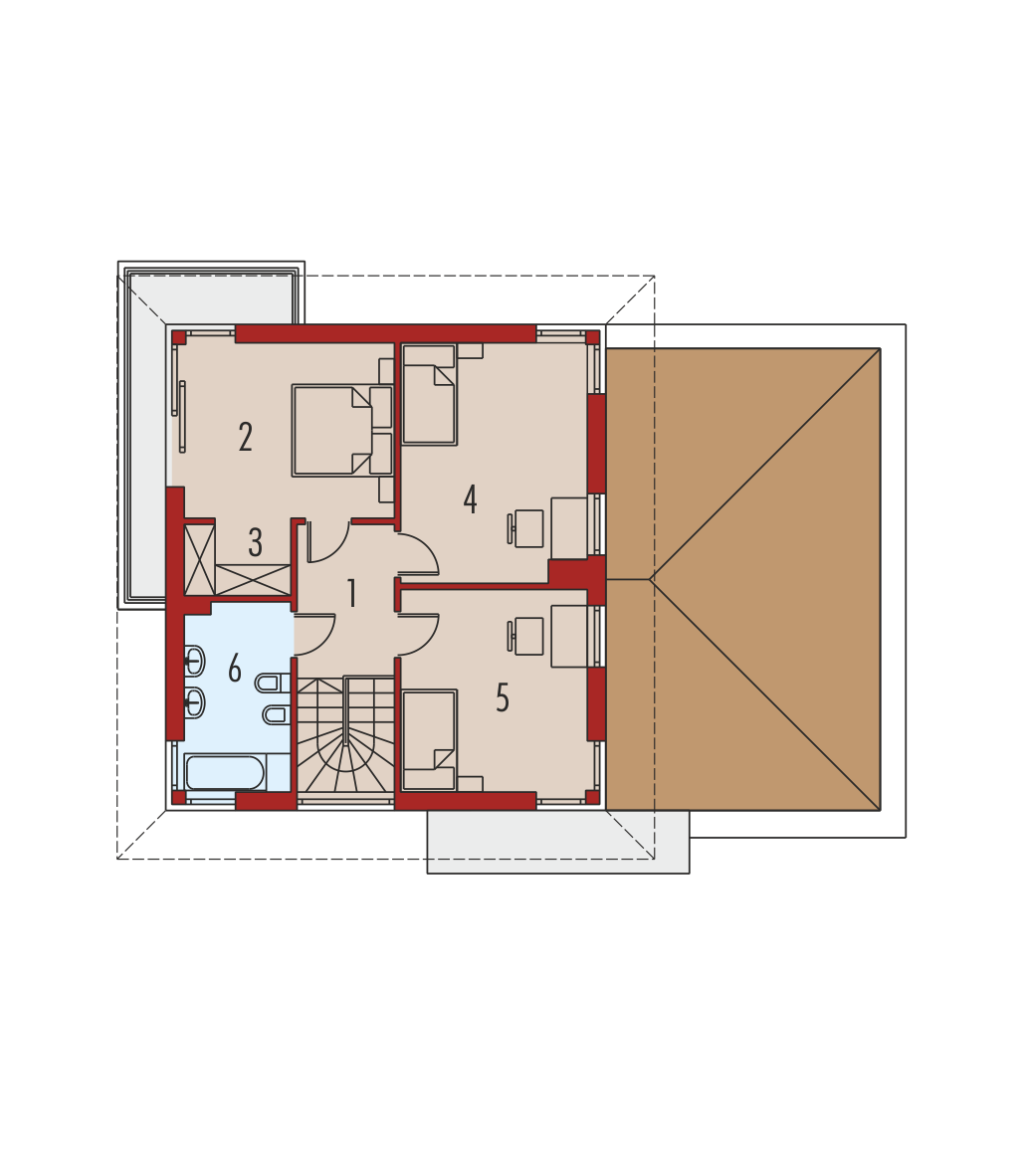 Charakterystyka: Dom piętrowy, niepodpiwniczony, z garażem jednostanowiskowym Przeznaczenie: Dom dla 3-4 osobowej rodziny Technologia i konstrukcja: Ściany zewnętrzne: murowane Strop: gęstożebrowy Dach: konstrukcja drewniana, ocieplenie wełna mineralna, dachówka ceramiczna Röben Inne: Schody wewnętrzne drewnianeRozwiązania instalacyjne: Ogrzewanie: kocioł gazowy, rozprowadzenie ciepła: grzejniki Wentylacja: grawitacyjna Wykończenie: Elewacje: tynk mineralny oraz okładzina kamienna, ceramiczna lub drewniana. Cokół kamienny Stolarka: drewniana, PCV lub aluminiowaWersje w serii Rodrigo - zapytaj o dostępność: - Rodrigo G2 Leca®DOM – dom w technologii Leca® KERAMZYT - Rodrigo II – dom w technologii murowanej z betonu komórkowego i cegły wapienno-piaskowej - Rodrigo III - inne wykończenie elewacji - Rodrigo IV – dom w technologii ścian trójwarstwowych z ceramiki poryzowanej - Rodrigo G2 Multi-Comfort - dom w standardzie Multi-Comfort Grupy Saint-Gobain- wszystkie wersje o podobnym układzie funkcji oraz z inną propozycją wykończenia elewacji - różne warianty garaży dla każdej wersji - odbicie lustrzane do każdej wersjiWszystkie wersje domów możliwe w dwóch standardach/wariantach instalacyjnych: - ENERGO: kocioł gazowy kondensacyjny, grzejniki, wentylacja grawitacyjna, OZE: kolektory słoneczne - ENERGO PLUS: pompa ciepła, ogrzewanie podłogowe, wentylacja mechaniczna, OZE: kolektory słoneczne lub panele fotowoltaiczneIstnieją techniczne możliwości wykonania zmian: - podpiwniczenia budynku - zbliźniaczenia
