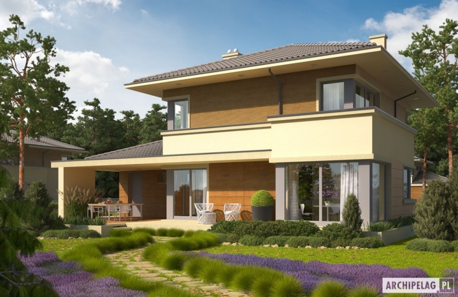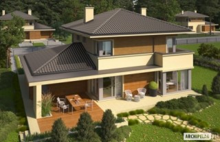 Charakterystyka: Dom piętrowy, niepodpiwniczony, z garażem jednostanowiskowym Przeznaczenie: Dom dla 3-4 osobowej rodziny Technologia i konstrukcja: Ściany zewnętrzne: murowane dwuwarstwowe, bloczki beton komórkowy 24 cm, ocieplenie wełna mineralna 12 cm Strop: gęstożebrowy Teriva, ocieplenie wełna mineralna Isover 30 cm Dach: konstrukcja drewniana, dachówka ceramiczna Röben Inne: Schody wewnętrzne drewnianeRozwiązania instalacyjne: Ogrzewanie: kocioł gazowy, rozprowadzenie ciepła: grzejniki Wentylacja: grawitacyjnaOZE: kolektory słoneczne Wykończenie: Elewacje: tynk mineralny oraz okładzina drewniana lub drewnopochodna. Cokół kamienny lub wykończony tynkiem akrylowym Stolarka: drewniana lub PCVWersje w serii Rodrigo - zapytaj o dostępność: - Rodrigo G2 Leca®DOM – dom w technologii Leca® KERAMZYT - Rodrigo II – dom w technologii murowanej z betonu komórkowego i cegły wapienno-piaskowej - Rodrigo III - inne wykończenie elewacji - Rodrigo IV – dom w technologii ścian trójwarstwowych z ceramiki poryzowanej - Rodrigo G2 Multi-Comfort - dom w standardzie Multi-Comfort Grupy Saint-Gobain- wszystkie wersje o podobnym układzie funkcji oraz z inną propozycją wykończenia elewacji - różne warianty garaży dla każdej wersji - odbicie lustrzane do każdej wersjiWszystkie wersje domów możliwe w dwóch standardach/wariantach instalacyjnych: - ENERGO: kocioł gazowy kondensacyjny, grzejniki, wentylacja grawitacyjna, OZE: kolektory słoneczne - ENERGO PLUS: pompa ciepła, ogrzewanie podłogowe, wentylacja mechaniczna, OZE: kolektory słoneczne lub panele fotowoltaiczneIstnieją techniczne możliwości wykonania zmian: - podpiwniczenia budynku - zbliźniaczenia