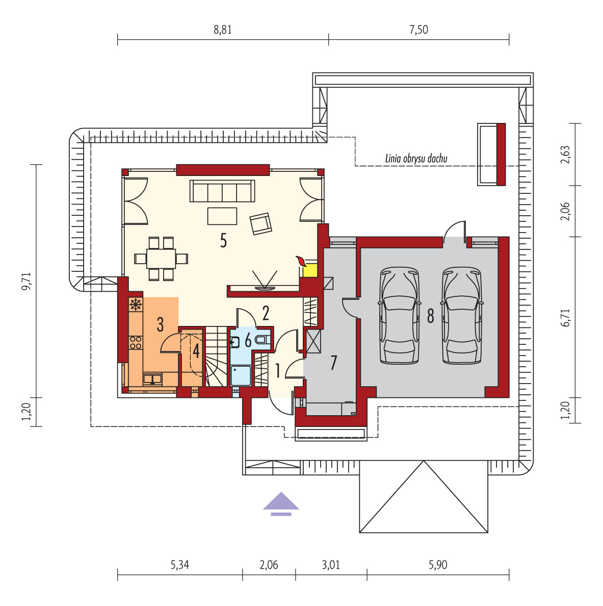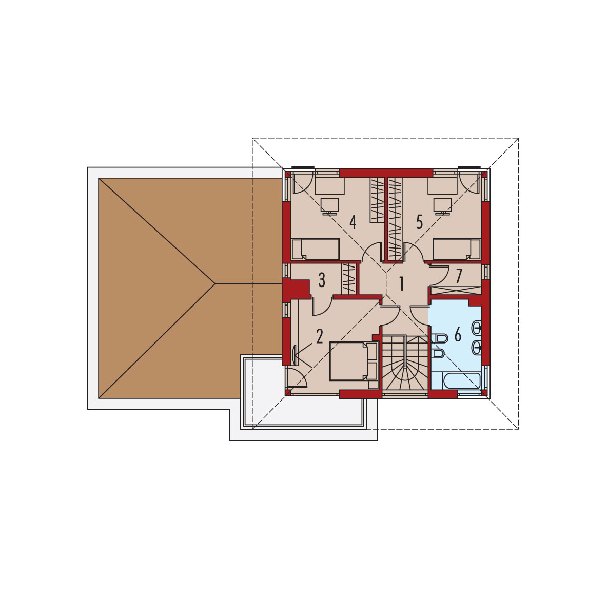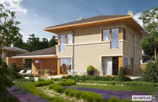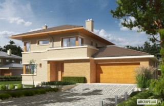 Ściany zewnętrzne trójwarstwowe wykonano z energooszczędnych pustaków ceramicznych. Charakterystyka: dom piętrowy, niepodpiwniczony, z garażem dwustanowiskowymPrzeznaczenie: dom dla 3-4-osobowej rodzinyTechnologia i konstrukcja:Fundamenty: ławy trójwarstwowe, bloczki betonowe 24 cm, ocieplenie styropian 10 cm, bloczki betonowe 12 cmŚciany zewnętrzne: murowane, trójwarstwowe, pustaki ceramiczne 24 cm, ocieplenie wełna mineralna Super-Vent firmy Isover 10 cm, pustka wentylacyjna, warstwa licowa z cegły klinkierowej 11,5 cm firmy RöbenŚciany wewnętrzne: murowane, pustaki ceramiczne 24 cm, ścianki działowe pustaki ceramiczne 11,5 cmPodłoga na gruncie: płyta betonowa, ocieplenie styropian 15 cmStrop: strop międzypiętrowy gęstożebrowy TerivaDach: konstrukcja drewniana, ocieplenie wełna mineralna 30 cm, dachówka ceramiczna MONZAplus Maduro firmy RöbenRozwiązania instalacyjne: Ogrzewanie: kocioł gazowy, rozprowadzenie ciepła: grzejniki Wentylacja: grawitacyjna OZE: kolektory słoneczneWykończenie:Elewacja: cegły licowe klinkierowe firmy Röben 11,5 cm, typ Ravello w kolorze piaskowobiałym i żółtym cieniowanym, elementy nadprożowe i parapety ceglane firmy RöbenStolarka: drewniana, PCV lub aluminiowaWersje w serii Rodrigo - zapytaj o dostępność: - Rodrigo G2 Leca®DOM – dom w technologii Leca® KERAMZYT - Rodrigo II – dom w technologii murowanej z betonu komórkowego i cegły wapienno-piaskowej - Rodrigo III - inne wykończenie elewacji - Rodrigo IV – dom w technologii ścian trójwarstwowych z ceramiki poryzowanej - Rodrigo G2 Multi-Comfort - dom w standardzie Multi-Comfort Grupy Saint-Gobain- wszystkie wersje o podobnym układzie funkcji oraz z inną propozycją wykończenia elewacji - różne warianty garaży dla każdej wersji - odbicie lustrzane do każdej wersjiWszystkie wersje domów możliwe w dwóch standardach/wariantach instalacyjnych: - ENERGO: kocioł gazowy kondensacyjny, grzejniki, wentylacja grawitacyjna, OZE: kolektory słoneczne - ENERGO PLUS: pompa ciepła, ogrzewanie podłogowe, wentylacja mechaniczna, OZE: kolektory słoneczne lub panele fotowoltaiczneIstnieją techniczne możliwości wykonania zmian:- podpiwniczenia budynku- zbliźniaczeniaAtuty projektu okiem architekta:- Doskonałe parametry cieplne dzięki zastosowaniu ścian trójwarstwowych - Delikatnie rozrzeźbiona bryła z modną aparycją- Kuchnia otwarta na jadalnię i salon z wydzieloną praktyczną spiżarnią- Słoneczny i reprezentacyjny salon z kominkiem- Przestronny, częściowo zadaszony taras umilający czas w ciepłe dni- Duże i reprezentacyjne przeszklenia w salonie z trzech stron świata- Wygodna strefa nocna zaplanowana na piętrze- Zadaszenie nad wejściem do budynku jako osłona przed wiatrem i śniegiem- Duża kotłownia pozwala na zastosowanie dowolnego źródła ogrzewania- Garaż oddzielony termicznie od ogrzewanej części budynku