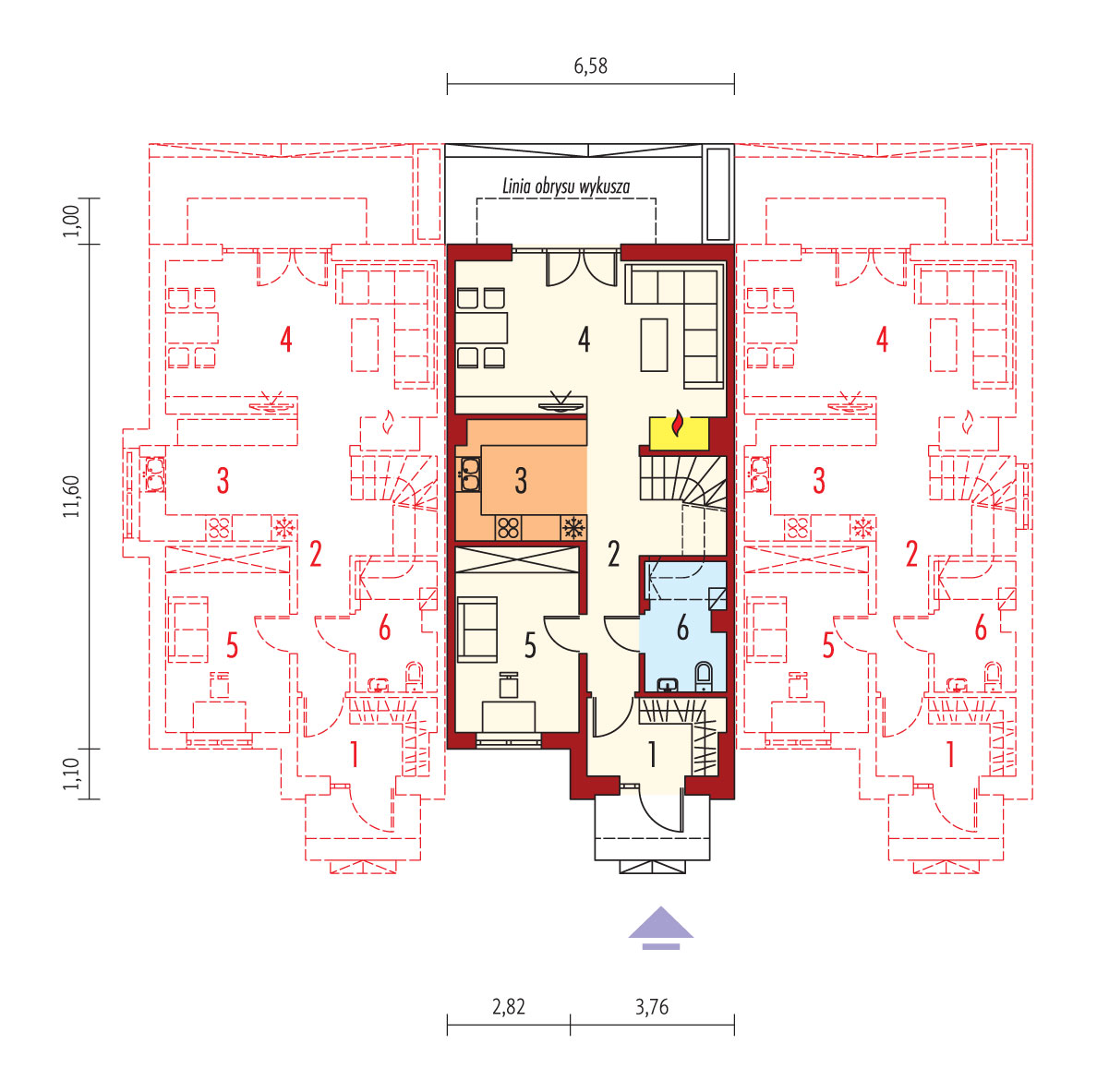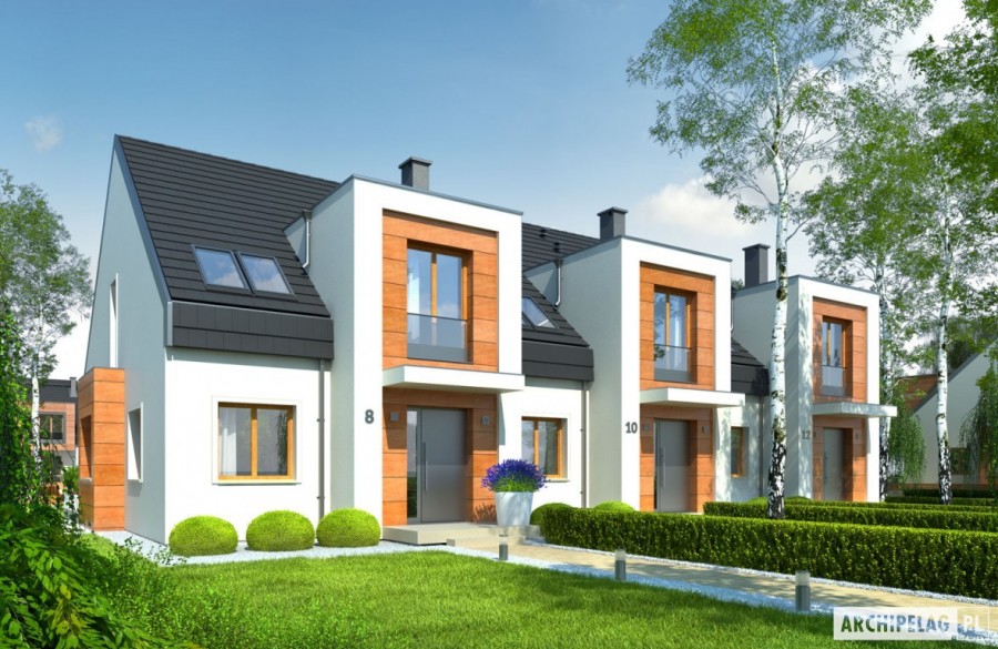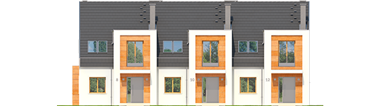 W projekcie zastosowano systemy zabudowy ścian działowych i sufitów podwieszanych Rigips. Charakterystyka: dom jednorodzinny w zabudowie szeregowej, z poddaszem użytkowym, niepodpiwniczonyPrzeznaczenie: dom dla 3-5-osobowej rodziny Powierzchnie i pozostałe dane liczbowe podano dla środkowego segmentu. Powierzchnia użytkowa segmentu lewego Sansa II: 122,63 m². Powierzchnia użytkowa segmentu prawego Sansa III: 121,31 m². Szerokości działek dla wszystkich segmentów pokazano na rzucie działki.Technologia i konstrukcja:Fundamenty: ławy, bloczki betonowe 24 cm, ocieplenie styropian 15 cmŚciany zewnętrzne: murowane, dwuwarstwowe, cegła wapienno-piaskowa Silka 18 cm, ocieplenie wełna mineralna Rockwool 20 cmŚciany wewnętrzne: murowane, nośne - cegła wapienno-piaskowa Silka 18 cm, ścianki działowe w systemie Rigips 12 cmStrop: strop międzypiętrowy gęstożebrowy TerivaDach: konstrukcja drewniana, ocieplenie wełna mineralna 30 cm, dachówka ceramiczna płaska Bergamo firmy Röben w kolorze antracytowymInne: schody wewnętrzne drewniane Rozwiązania instalacyjne:Ogrzewanie: kocioł gazowy kondensacyjny, rozprowadzenie ciepła: grzejnikiWentylacja: grawitacyjnaOZE: kolektory słoneczneWykończenie:Elewacje: tynk cienkowarstwowy mineralny w kolorze TO-PA001 z palety firmy Termo Organika, okładzina z płyty HPL z naturalną okleiną drewnianą firmy ProdemaStolarka: drewniana, PVC lub aluminiowa, drzwi wejściowe firmy HörmannOkna połaciowe: rozwiązania technologiczne firmy VELUX Pobierz ekspercki poradnik VELUX i dowiedz się jak wybrać okna dachoweOtoczenie: system tarasowy ProDeck - deska kompozytowa Terra w kolorze wiśniaWersje - zapytaj o dostępność:- Sansa II – segment lewy- Sansa III – segment prawy- Odbicie lustrzane do każdej wersji Istnieje techniczna możliwość:- podpiwniczenia budynku- zbliźniaczenia lub wykonania domu dwulokalowego- wykonania budynku w technologii szkieletowej Atuty projektu okiem architekta:- Ścianki wewnętrzne w technologii lekkiej umożliwiają dowolną aranżację wnętrz- Funkcjonalne i ergonomiczne wnętrze z podziałem na strefę dzienną na parterze i nocną na poddaszu- Wiatrołap z praktyczną garderobą- Duży gabinet na parterze mogący pełnić również funkcję dodatkowej sypialni- Trzy sypialnie, w tym główna z garderobą- Częściowo zadaszony taras od strony ogrodu