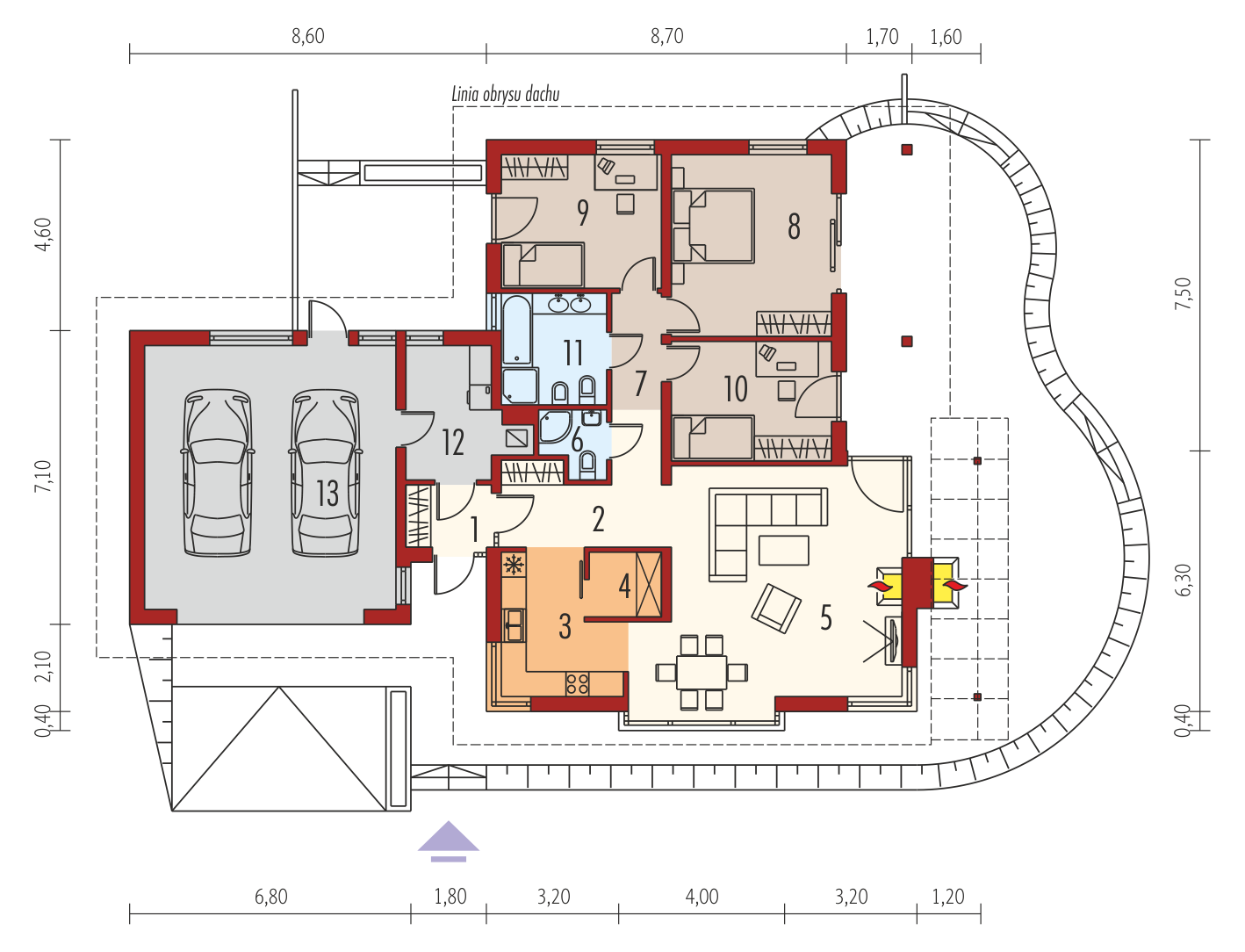 Uwaga! Przedstawione wizualizacje prezentują wersję domu z dachem o kącie nachylenia 24°Charakterystyka: Dom parterowy, niepodpiwniczony, z garażem jednostanowiskowym Przeznaczenie: Dom dla 3-4-osobowej rodziny Technologia i konstrukcja: Ściany zewnętrzne: murowane, dwuwarstwowe, beton komórkowy 24 cm, ocieplenie wełna mineralna 12 cm Ściany wewnętrzne: nośne i działowe murowane, cegła wapienno-piaskowa 24 cm i 12 cm Strop: gęstożebrowy Teriva, ocieplenie wełna mineralna 30 cm Dach: konstrukcja drewniana, dachówka ceramiczna płaska Bergamo firmy Röben, dachówka ceramiczna firmy Röben, więźba dachowa dostępna również w systemie prefabrykacji drewnianejRozwiązania instalacyjne: Ogrzewanie: kocioł gazowy kondensacyjny, rozprowadzenie ciepła: grzejniki Wentylacja: grawitacyjna Wykończenie: Elewacje: tynk cienkowarstwowy mineralny, okładzina kamienna Stolarka: drewniana, PVC lub aluminiowa, drzwi wejściowe i brama garażowa firmy Hörmann,Wersje - zapytaj o dostepność:- Selena (30 stopni) – wersja bez garażu - Selena – wersja z dachem o kącie nachylenia 24°, różne wersje garaży - Selena II – podobny układ funkcji i aranżacji elewacji w strefie dziennej, inne wykończenie elewacji, z dachem o kącie nachylenia 24°, różne wersje garaży - Selena II G1 (30 stopni) - podobny układ funkcji i aranżacji elewacji w strefie dziennej, inne wykończenie elewacji, z garażem jednostanowiskowym - Selena II G2 (30 stopni) - podobny układ funkcji i aranżacji elewacji w strefie dziennej, inne wykończenie elewacji, z garażem dwustanowiskowym - odbicie lustrzane do każdej wersji Istnieje techniczna możliwość: - podpiwniczenia budynku - wykonania budynku w technologii szkieletowej