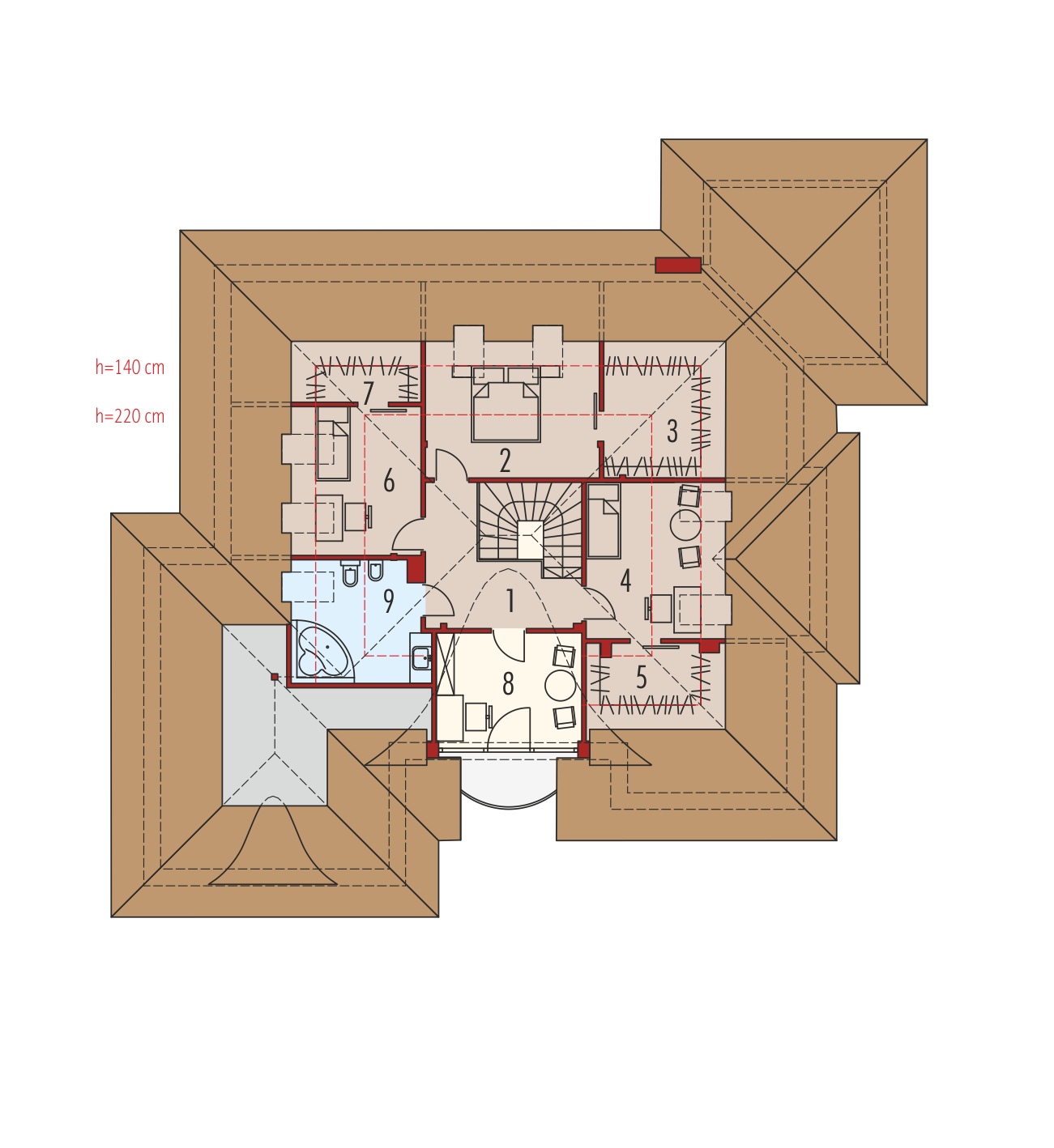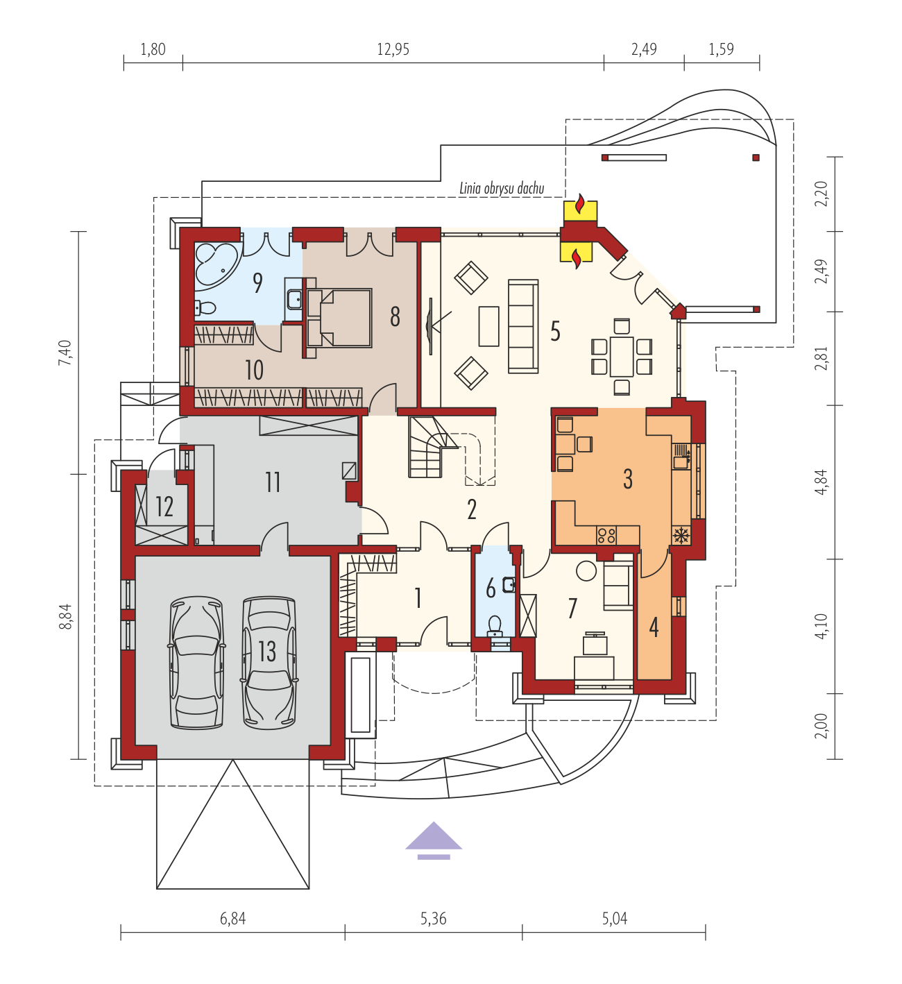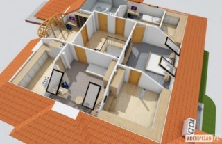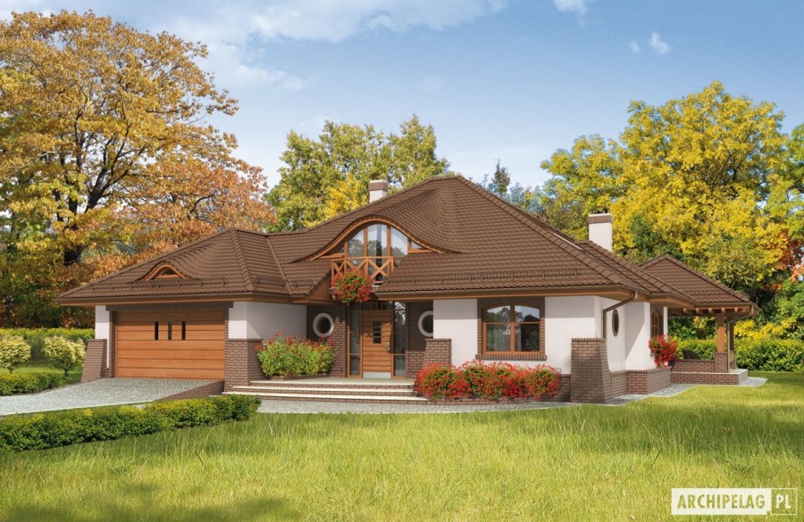 Charakterystyka: Dom parterowy z poddaszem użytkowym, niepodpiwniczony, z garażem dwustanowiskowym Przeznaczenie: Dom dla 3-6-osobowej rodzinyTechnologia i konstrukcja:Ściany zewnętrzne: murowane, dwuwarstwowe, beton komórkowy firmy H+H, ocieplenie styropian Termo Organika 20 cmŚciany wewnętrzne: nośne i działowe murowane, beton komórkowy firmy H+H 24 cm i 11,5 cmStrop: międzypiętrowy gęstożebrowy TerivaDach: konstrukcja drewniana, ocieplenie wełna mineralna Isover 30 cm, dachówka ceramiczna karpiówka firmy RöbenInne: schody wewnętrzne drewniane Rozwiązania instalacyjne:Ogrzewanie: kocioł gazowy kondensacyjny firmy Viessmann, rozprowadzenie ciepła: grzejniki firmy Purmo Wentylacja: grawitacyjna OZE: kolektory słoneczne firmy Viessmann Dodatkowo: stacja uzdatniania wody firmy ViessmannWykończenie:Elewacje: tynk cienkowarstwowy mineralny w kolorze białym TO-PA 001 z palety firmy Termo Organika, okładzina klinkierowa firmy RöbenStolarka: drewniana, PVC lub aluminiowa, drzwi wejściowe i brama garażowa firmy HörmannOkna połaciowe: rozwiązania technologiczne i wyłaz dachowy firmy VELUX Pobierz ekspercki poradnik VELUX i dowiedz się jak wybrać okna dachoweOtoczenie: kostka betonowa firmy Libet Wersje - zapytaj o dostepność:- Seweryna G2 – inne wykończenie elewacji- Seweryna (mała) G2 – mniejsza powierzchnia użytkowa, podobny układ funkcjonalny, inne wykończenie elewacji- odbicie lustrzane do każdej wersjiIstnieje techniczna możliwość:- podpiwniczenia budynku- wykonania budynku w technologii szkieletowej