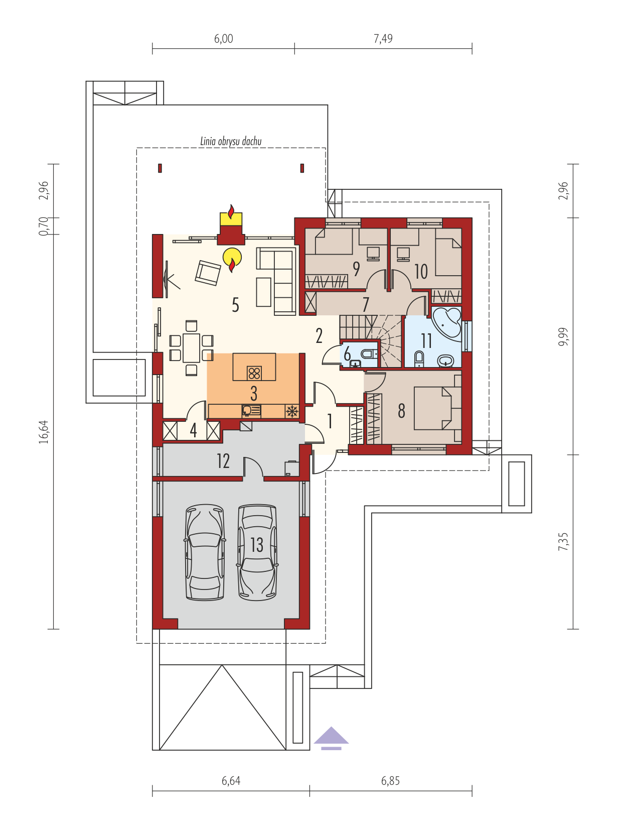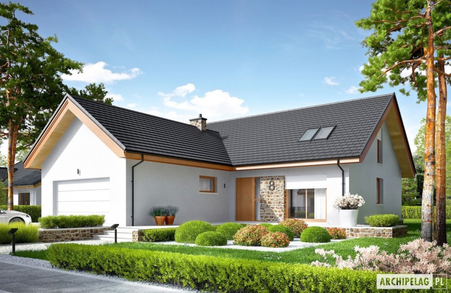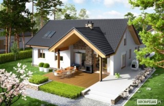 Charakterystyka: Dom parterowy z poddaszem do późniejszej adaptacji na cele mieszkalne, niepodpiwniczony, z garażem dwustanowiskowymPrzeznaczenie: Dom dla 3-4-osobowej rodziny Technologia i konstrukcja:Ściany zewnętrzne: murowane, dwuwarstwowe, beton komórkowy Solbet 24 cm, ocieplenie styropian Termoorganika 20 cmStrop: gęstożebrowy TerivaDach: konstrukcja drewniana, ocieplenie wełna mineralna 30 cm, dachówka ceramiczna płaska Bergamo firmy Röben, więźba dachowa dostępna również w systemie prefabrykacji drewnianej Rozwiązania instalacyjne:Ogrzewanie: kocioł gazowy kondensacyjny, rozprowadzenie ciepła: grzejnikiWentylacja: grawitacyjna Wykończenie:Elewacje: tynk cienkowarstwowy mineralny w kolorze TO-PA001 z palety firmy Termo Organika, okładzina kamienna Stolarka: drewniana, PVC lub aluminiowa, rolety zewnętrzne w systemie CleverBox firmy BeClever, drzwi wejściowe i brama garażowa firmy HörmannOtoczenie: system tarasowy ProDeck - deska kompozytowa Terra w kolorze kasztanWersje domów w serii Simon - zapytaj o dostępność: - Simon – dom z poddaszem do adaptacji, 3 sypialnie, dach o kącie nachylenia 30° - Simon II – dom z poddaszem użytkowym, 3 sypialnie + gabinet, dach o kącie nachylenia 35° - Simon III – dom parterowy, 4 sypialnie, dach o kącie nachylenia 25° - Simon IV – dom parterowy, 3 sypialnie, dach o kącie nachylenia 25° - Simon (mały) – dom z poddaszem do adaptacji, mniejsza powierzchnia użytkowa, 3 sypialnie, dach o kącie nachylenia 35° - Simon III (wiązary) – system suchej zabudowy ścian działowych Rigips, wiązary prefabrykowane, rozwiązania materiałowo-technologiczne Grupy Saint-Gobain, układ funkcji jak w domu Simon III G2, dom parterowy, 4 sypialnie, dach o kącie nachylenia 25° - Simon IV (bliźniak) – dom parterowy w zabudowie bliźniaczej, 3 sypialnie, dach o kącie nachylenia 25° - Simon 01 (dwulokalowy) – dom z dwoma mieszkaniami, z poddaszem do adaptacji, dach o kącie nachylenia 30° – wszystkie wersje o podobnym układzie funkcji oraz z inną propozycją wykończenia elewacji – wszystkie wersje z trzema wariantami garaży: bez garażu, z garażem jedno- i dwustanowiskowym (wyjątek: dom dwulokalowy – tylko w wariancie bez garażu) – odbicie lustrzane do każdej wersjiWszystkie wersje domów możliwe w dwóch standardach/wariantach instalacyjnych: - ENERGO: kocioł gazowy kondensacyjny, grzejniki, wentylacja grawitacyjna, OZE: kolektory słoneczne - ENERGO PLUS: pompa ciepła, ogrzewanie podłogowe, wentylacja mechaniczna, OZE: kolektory słoneczne lub panele fotowoltaiczneIstnieją techniczne możliwości wykonania zmian: - podpiwniczenia budynku- zmiany kąta nachylenia dachu do 30° i adaptacji poddasza na cele mieszkalne - wykonania budynku w technologii szkieletowej - dokonania zmian funkcjonalnych wg indywidualnych wymagańAtuty projektu okiem architekta:- Bryła o bardzo dobrych parametrach cieplnych- Funkcjonalne i ergonomiczne wnętrze z podziałem na strefę dzienną i nocna- Poddasze nieużytkowe do późniejszego wykorzystania na cele mieszkalne- Reprezentacyjny zadaszony taras z kominkiem zewnętrznym- Świetnie doświetlony przestronny salon- Otwarta kuchnia z dużą wyspą- Duże przeszklenia od strony ogrodu oraz w jadalni z widokiem na ogród- Garaż oddzielony termicznie od ogrzewanej części budynku- Przestronna strefa gospodarcza: duże pomieszczenie kotłowni