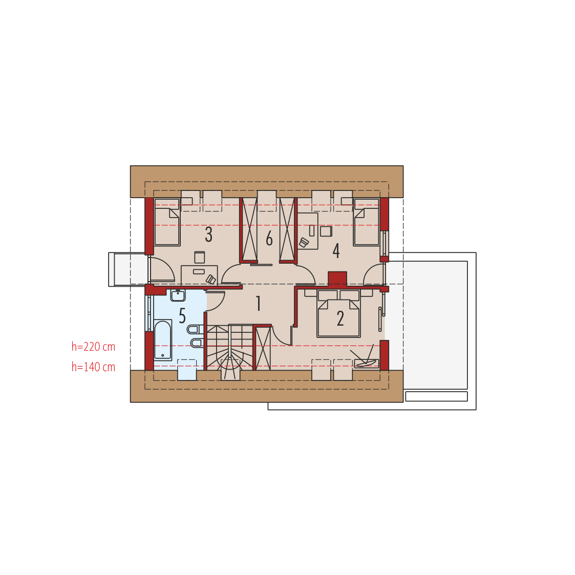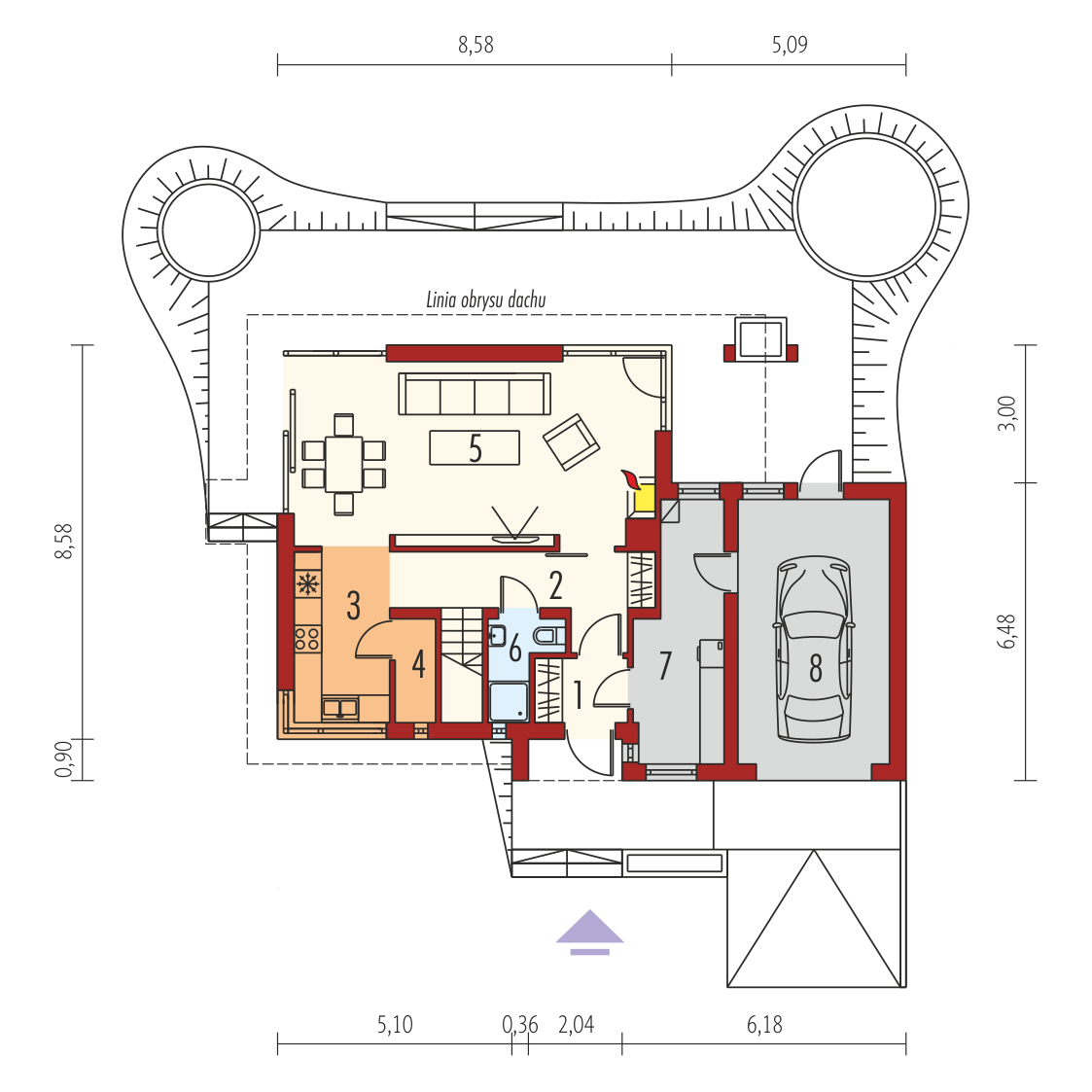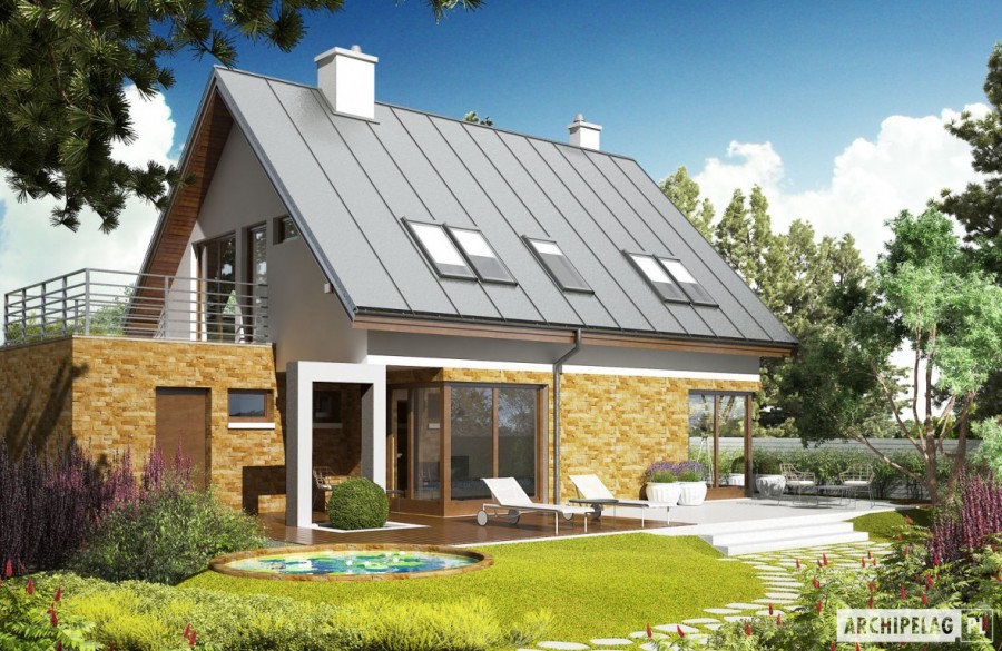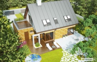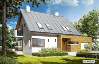 Charakterystyka: Dom parterowy z poddaszem użytkowym, niepodpiwniczony, z garażem jednostanowiskowym Przeznaczenie: Dom dla 3-4 osobowej rodziny Technologia i konstrukcja: Ściany zewnętrzne: murowane Strop: międzypiętrowy gęstożebrowy Dach: konstrukcja drewniana, ocieplenie wełna mineralna, blacha na rąbek stojący Classic firmy Ruukki Inne: schody wewnętrzne drewniane. Rozwiązania instalacyjne: Ogrzewanie: kocioł gazowy, rozprowadzenie ciepła: grzejniki Wentylacja: grawitacyjna Wykończenie: Elewacje: tynk mineralny, okładzina kamienna lub: drewniana, klinkierowa, z elewacyjnych płyt cementowych. Cokół kamienny Stolarka: drewniana lub PCV, drzwi wejściowe i brama garażowa firmy HörmannWersje - zapytaj o dostępność: - Tim - bez garażu, z garażem dwustanowiskowym - Tim G1 (wersja A) - z innym wykończeniem elewacji - Tim II - z inna aranżacją pomieszczeń, bez garażu, z garażem jedno- lub dwustanowiskowym - odbicie lustrzane do każdej wersjiIstnieje techniczna możliwość: - podpiwniczenia