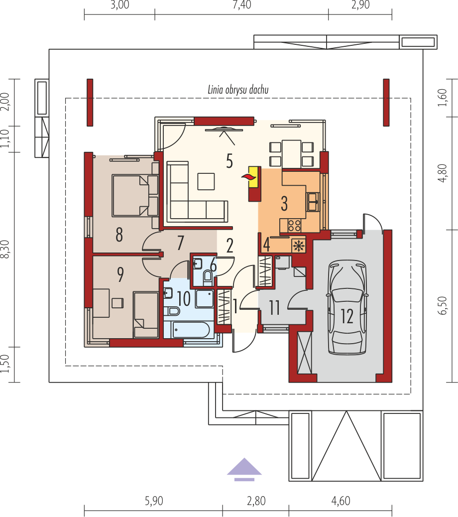 Charakterystyka: Dom parterowy, niepodpiwniczony Przeznaczenie: Dom dla 2-3-osobowej rodziny Technologia i konstrukcja: Ściany zewnętrzne: murowane, dwuwarstwowe, beton komórkowy 24 cm, ocieplenie wełna mineralna 12 cm Strop: gęstożebrowy Teriva Dach: konstrukcja drewniana, ocieplenie wełna mineralna 30 cm, dachówka ceramiczna firmy IBF, więźba dachowa dostępna również w systemie prefabrykacji drewnianej Rozwiązania instalacyjne: Ogrzewanie: kocioł gazowy kondensacyjny, rozprowadzenie ciepła: grzejniki Wentylacja: grawitacyjna Wykończenie: Elewacje: tynk cienkowarstwowy mineralny, okładzina kamienna Stolarka: drewniana, PVC lub aluminiowa, drzwi wejściowe i brama garażowa firmy HörmannWersje w serii Tori - zapytaj o dostępność: - Tori – wersja podstawowa - Tori II – podobny układ funkcjonalny, dach 4-spadowy - Tori III – podobny układ funkcjonalny, dach 2-spadowy - Tori III ECONOMIC (wersja A, B) – podobny układ funkcjonalny, dach 2-spadowy - wszystkie wersje o podobnymukładzie funkcji oraz z inną propozycją wykończenia elewacji i pokrycia dachu - wszystkie wersje z dwoma wariantami garaży: bez garażu i z garażem jednostanowiskowym - odbicie lustrzane do każdej wersjiWszystkie wersje domów możliwe w dwóch standardach/wariantach instalacyjnych: - ENERGO: kocioł gazowy kondensacyjny, grzejniki, wentylacja grawitacyjna, OZE: kolektory słoneczne - ENERGO PLUS: pompa ciepła, ogrzewanie podłogowe, wentylacja mechaniczna, OZE: kolektory słoneczne lub panele fotowoltaiczne Istnieją techniczne możliwości wykonania zmian: - podpiwniczenia budynku - wykonania budynku w technologii szkieletowej - dokonania zmian funkcjonalnych wg indywidualnych wymagań