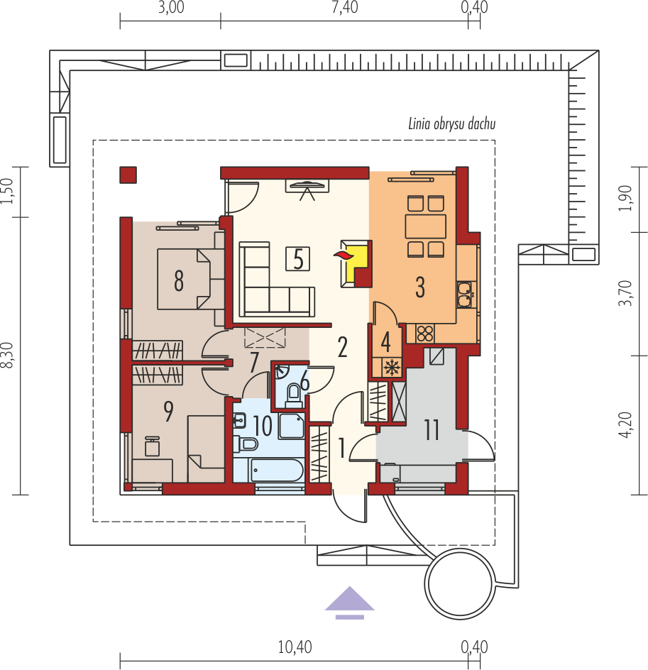 Charakterystyka: Dom parterowy, niepodpiwniczony Przeznaczenie: Dom dla 2-3 osobowej rodziny Technologia i konstrukcja: Ściany zewnętrzne: murowane, Strop: gęstożebrowy Dach: konstrukcja drewniana, dachówka ceramiczna płaska Bergamo firmy RöbenRozwiązania instalacyjne: Ogrzewanie: kocioł gazowy, rozprowadzenie ciepła: grzejniki Wentylacja: grawitacyjna Wykończenie: Elewacje: tynk mineralny i okładzina kamienna Stolarka: drewniana lub PCV, drzwi wejściowe firmy HörmannWersje w serii Tori - zapytaj o dostępność: - Tori – wersja podstawowa - Tori II – podobny układ funkcjonalny, dach 4-spadowy - Tori III – podobny układ funkcjonalny, dach 2-spadowy - Tori III ECONOMIC (wersja A, B) – podobny układ funkcjonalny, dach 2-spadowy - wszystkie wersje o podobnymukładzie funkcji oraz z inną propozycją wykończenia elewacji i pokrycia dachu - wszystkie wersje z dwoma wariantami garaży: bez garażu i z garażem jednostanowiskowym - odbicie lustrzane do każdej wersjiWszystkie wersje domów możliwe w dwóch standardach/wariantach instalacyjnych: - ENERGO: kocioł gazowy kondensacyjny, grzejniki, wentylacja grawitacyjna, OZE: kolektory słoneczne - ENERGO PLUS: pompa ciepła, ogrzewanie podłogowe, wentylacja mechaniczna, OZE: kolektory słoneczne lub panele fotowoltaiczne Istnieją techniczne możliwości wykonania zmian: - podpiwniczenia budynku - wykonania budynku w technologii szkieletowej - dokonania zmian funkcjonalnych wg indywidualnych wymagań