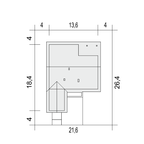 Mały dom parterowy, niepodpiwniczony, przeznaczony dla 3-4 osobowej rodziny. Na parterze znajdują się: pokój dzienny połączony z kuchnią i jadalnią, pom. gospodarcze z kotłem grzewczym, trzy sypialnie, łazienka i wc. Projekt dostępny w wersji bez garażu - Słoneczko I i Słoneczko II.