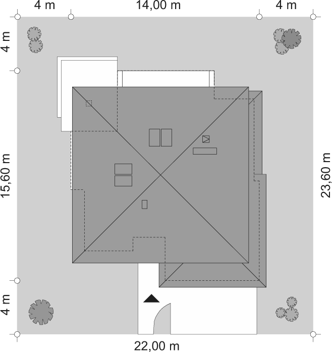 Projekt domu Zyga, wśród domów z użytkowym poddaszem o powierzchni użytkowej 125-140m2, z podwójnym garażem, na planie litery T, konkuruje z Kają Muzą, która ma także prostopadłe kalenice obu skrzydeł budynku. Smuklejszy (a przez to oferujący większą strefę dzienną) plan bryły mieszkalnej Zygi, boczne wejście we frontowym podcieniu przy garażu oraz inna forma okapów odróżniają jednak obie koncepcje. Poza tym rozkład funkcjonalny jest bardzo podobny. Przechodnia kotłownia przy sieni znajduje się w części mieszkalnej, dzięki czemu część garażowa może być węższa i w efekcie front ze szczytem dachu, wyraźnie wysuwa się na pierwszy plan. Brak miejsca na spiżarnię przy kuchni rekompensuje wygodny hol z dużymi szafami. Kominek w salonie ulokowano przy kuchni. Poddasze, tak jak we wszystkich wariantach Kai, jest dwupoziomowe, ale nie zajmuje całego zarysu parteru. Dopełniają go długie loggie pod okapami ścian szczytowych. Dwustanowiskowy garaż umożliwia stworzenie nad nim ustronnego, komfortowego zespołu głównej sypialni z łazienką i garderobą. Nad częścią mieszkalną znajdują się kolejne trzy pokoje z dużą łazienką. Dwuspadowy dach jest prosty, bez lukarn a zredukowany okap z ukrytym odprowadzeniem deszczówki zastąpił opuszczony na górną partię elewacji panel pokrycia.