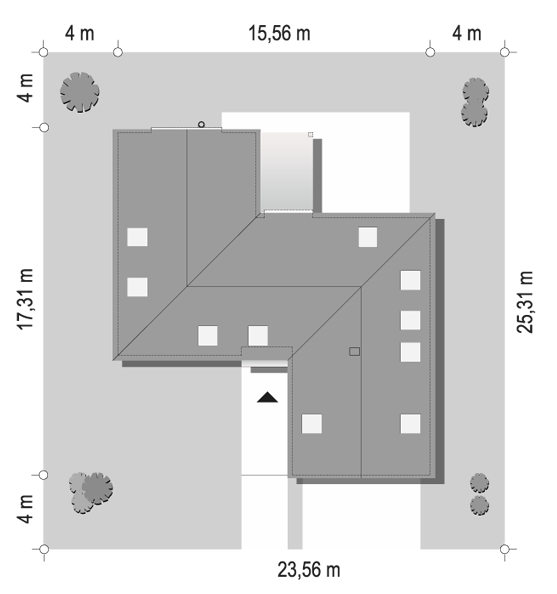 PODSTAWOWE DANE PROJEKTU Pow. użytkowa 155,10 m2 Pow. netto 206,23 m2 Pow. zabudowy 133,77 m2 Kubatura 506 m3 Min. wym. działki 23,61 x 17,59m Wysokość budynku 8,13 m Kąt nachylenia dachu 400 Powierzchnia dachu 242,80 m2 Bardzo funkcjonalny, nieduży dom dla rodziny cztero lub pięcioosobowej. Dom posiada na parterze liczne pomieszczenia pomocnicze, takie jak spiżarka przy kuchni, pralnia oraz pomieszczenie gospodarcze przy ogrodzie, które znacznie ułatwiają życie domownikom. Na piętrze znajdują się trzy duże i ustawne sypialnie, w tym jedna z własną łazienką, pracownia - gabinet oraz pojemna garderoba. W naszej ofercie dostępna jest również wersja w odbiciu lustrzanym. TECHNOLOGIA WYKONANIA ELEWACJE tynk strukturalny plus okładzina STROP Teriva ŚCIANY WEWNĘTRZNE bloczki gazobetonowe lub pustak ceramiczny / cegła dziurawka ŚCIANY ZEWNĘTRZNE bloczki gazobetonowe lub pustak ceramiczny + ocieplenie styropian POKRYCIE DACHU dachówka ceramiczna lub blachodachówka