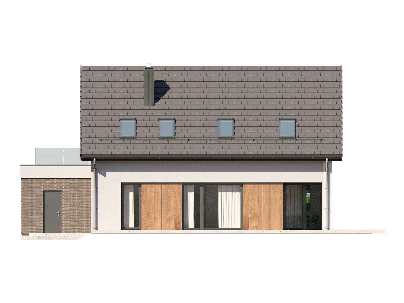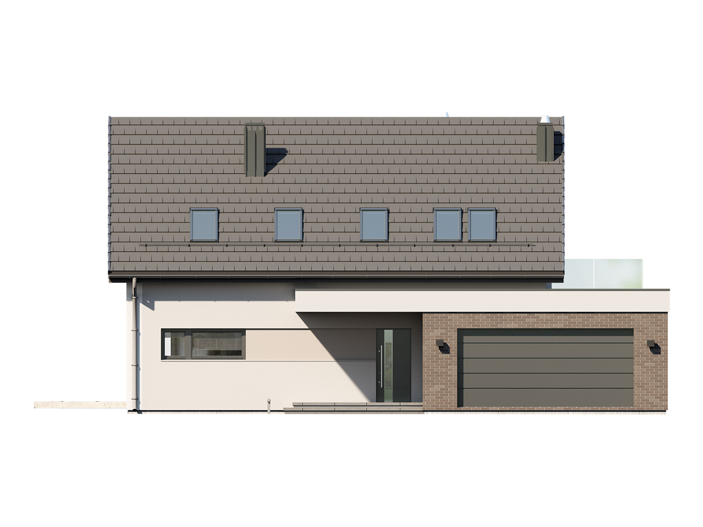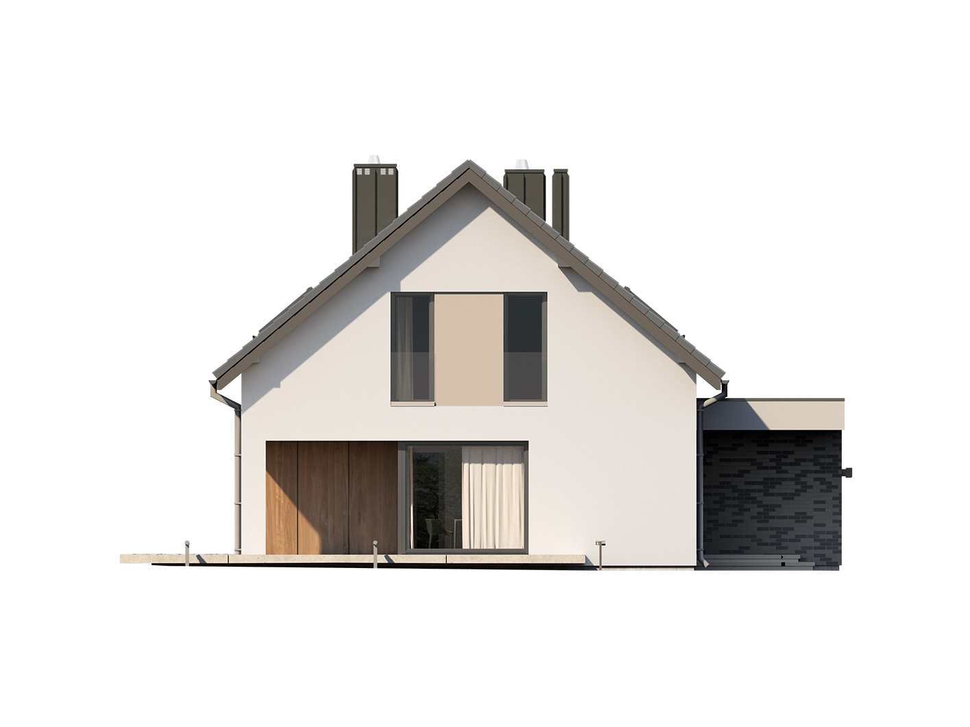 Nela 2 to jednorodzinny budynek mieszkalny, parterowy z użytkowym poddaszem i dwustanowiskowym garażem. Bogaty i funkcjonalny układ pomieszczeń gwarantuje optymalny komfort wieloosobowej rodzinie. Ergonomicznie zaprojektowana i wyraźnie podzielona przestrzeń mieszkalna składa się ze strefy dziennej, nocnej i gospodarczej. Najbardziej reprezentacyjna część domu to przestronny salon, przeszklona jadalnia, która otwiera się na duży taras oraz kuchnia ze spiżarnią. Oprócz części dziennej przewidziano na parterze dodatkowy pokój, który można wykorzystać na gabinet lub kolejną sypialnię oraz łazienkę. Na poddaszu przewidziano 3 sypialnie, łazienkę oraz pralnię. Największa sypialnia posiada własną łazienkę oraz garderobą. Dużą kotłownię, na każdy rodzaj paliwa oraz dwustanowiskowy garaż zlokalizowano w części gospodarczej domu. Geometria rzutu, harmonia bryły oraz prostota nowoczesnych elewacji czynią ten dom nie tylko łatwym w eksploatacji i utrzymaniu ale również niezwykle eleganckim.