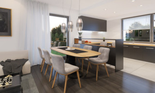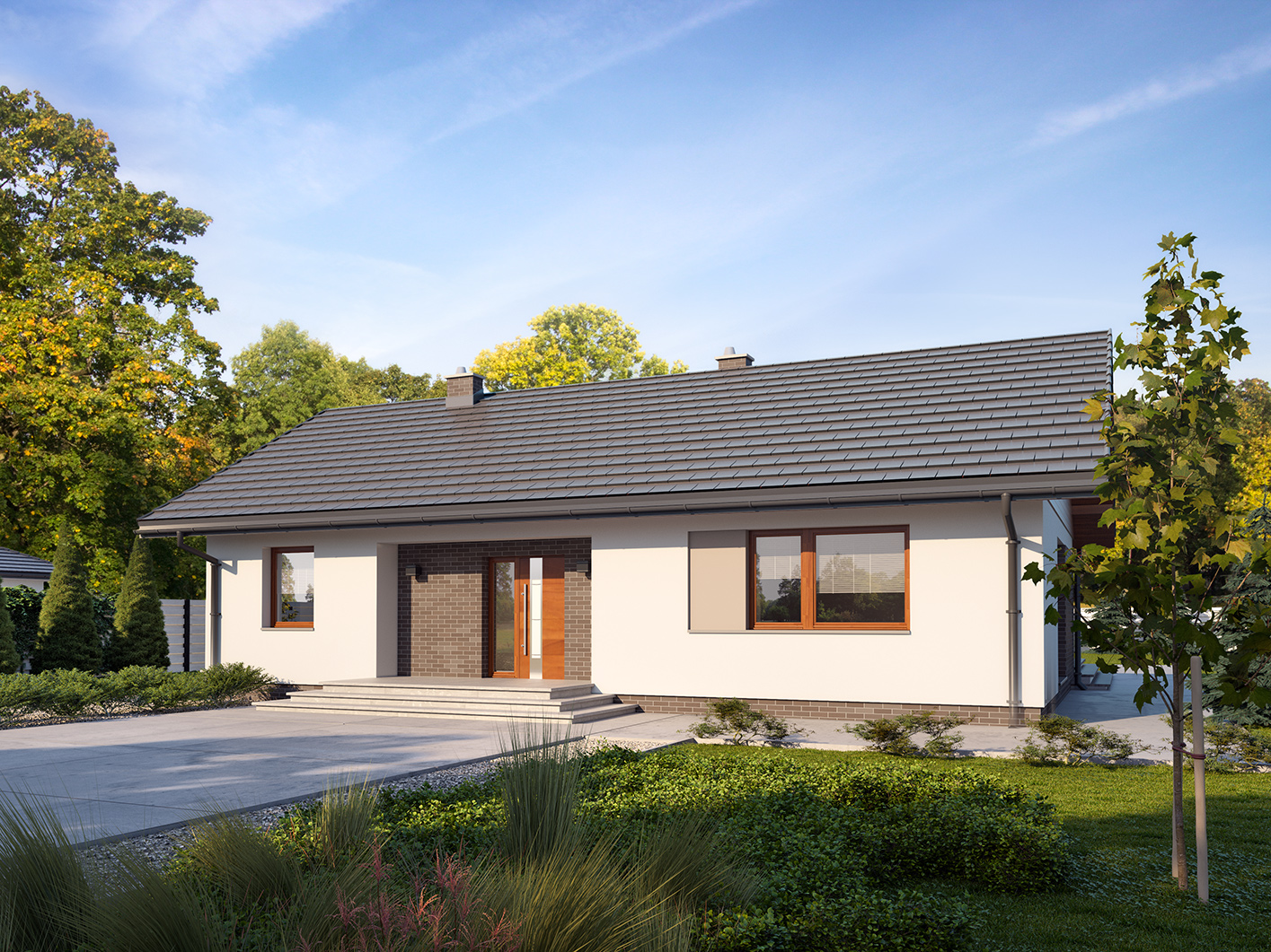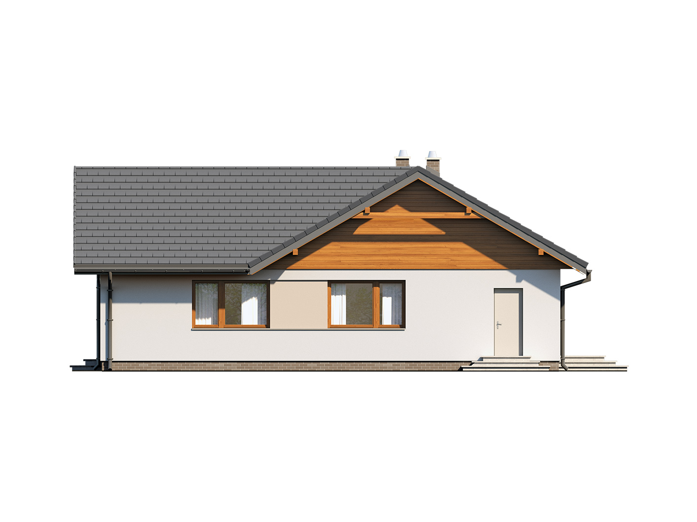 Niko 3 to projekt parterowego domu jednorodzinnego odpowiadający optymalnym potrzebom 4-osobowej rodziny. Dzięki ustawnej i ergonomicznie rozplanowanej przestrzeni, z wyraźnym podziałem na strefy, jest wygodny i funkcjonalny w użytkowaniu. Przestronna część dzienna to proste i klasyczne połączenie salonu, jadalni i kuchni ze spiżarnią, zaś strefa intymna składa się z 3 sypialni i łazienki. Największa sypialnia posiada własną garderobę i łazienkę. Wejście do domu jest przez praktyczny podcień chroniący przed deszczem i słońcem. Z samego wiatrołapu prowadzi wejście do dużej kotłowni na każdy rodzaj paliwa. Prosta i zwarta bryła budynku, przykryta dwuspadowym dachem, pozwala na łatwą i stosunkowo niedrogą budowę.