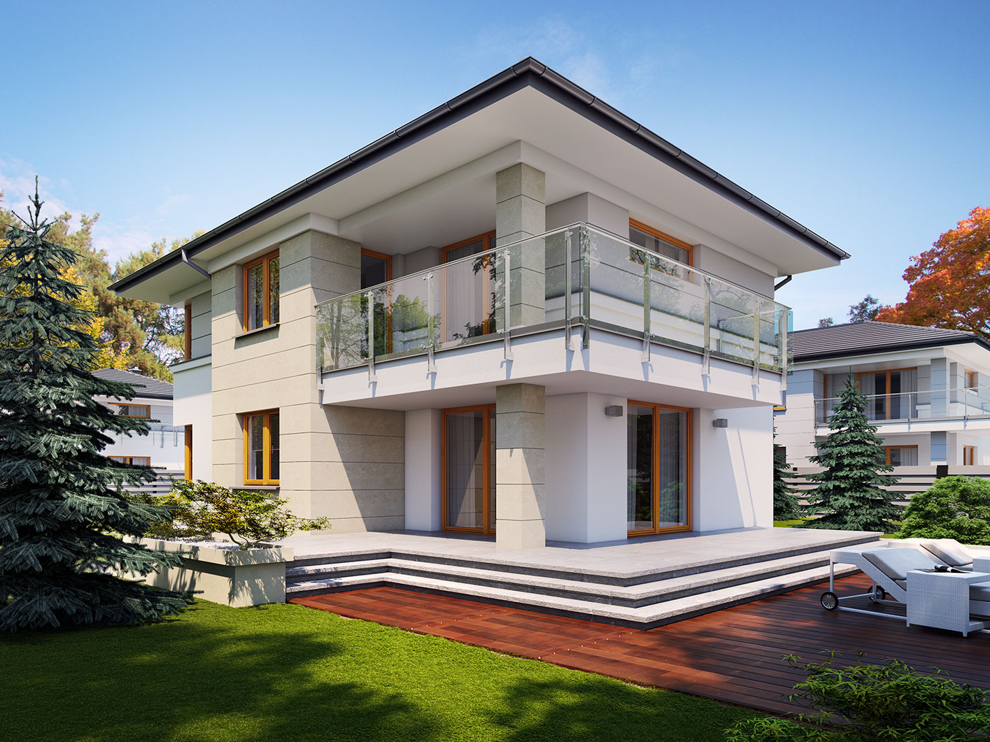Karat 3, to projekt eleganckiego, nowoczesnego domu piętrowego przeznaczonego dla 4-osobowej rodziny. Jest to typowo miejska rezydencja o reprezentacyjnym wyglądzie i optymalnej powierzchni użytkowej. Posiada bogaty program fukncjonalny, rozłożony na dwóch pełnych kondygnacyjnych, który zapewni komfort wymagającym inwestorom. Parter zaprojektowano jako otwartą przestrzeń dzienną, złożoną z połączonego salonu, jadalni i kuchni. Na parterze znajduje się również duża kotłownia, na każdy rodzaj paliwa oraz garaż o szerokości 1,5 miejsca postojowego. Na piętrze zaprojektowano 3 sypialnie i łazienkę. Główna sypialnia ma zapewnioną własną garderobę oraz łazienkę. Taką dodatkową przestrzeń można według potrzeb przerobić np. na kącik do pracy. Karat 3 zachwyca ciekawą, ponadczasową, klasyczną bryłą ujętą we współczesny elegancki wizerunek. Rezydencja ta stanowi doskonałą propozycję dla inwestorów poszukujących komfortowego domu w estetycznym wydaniu.