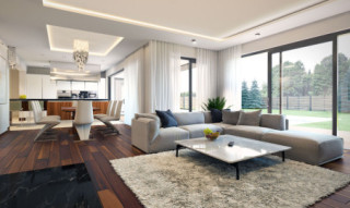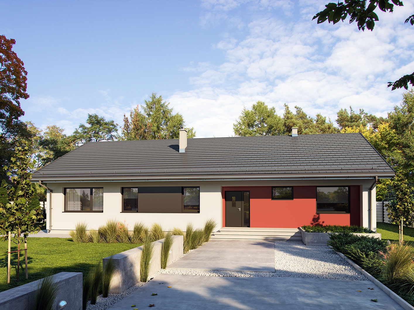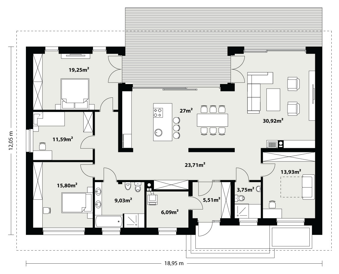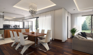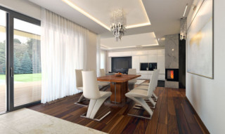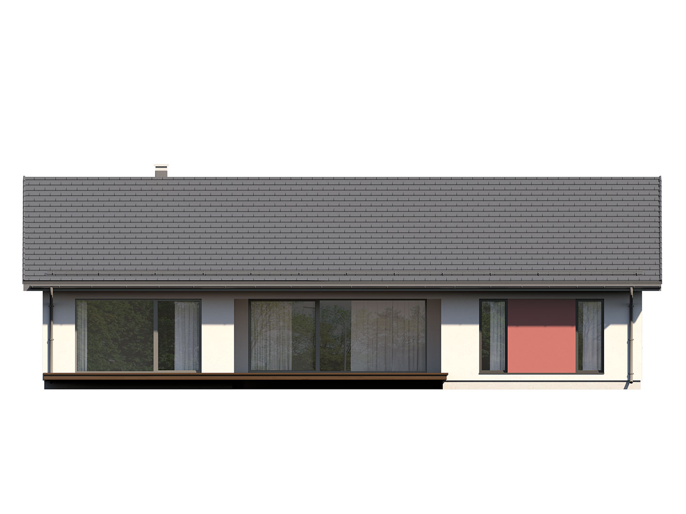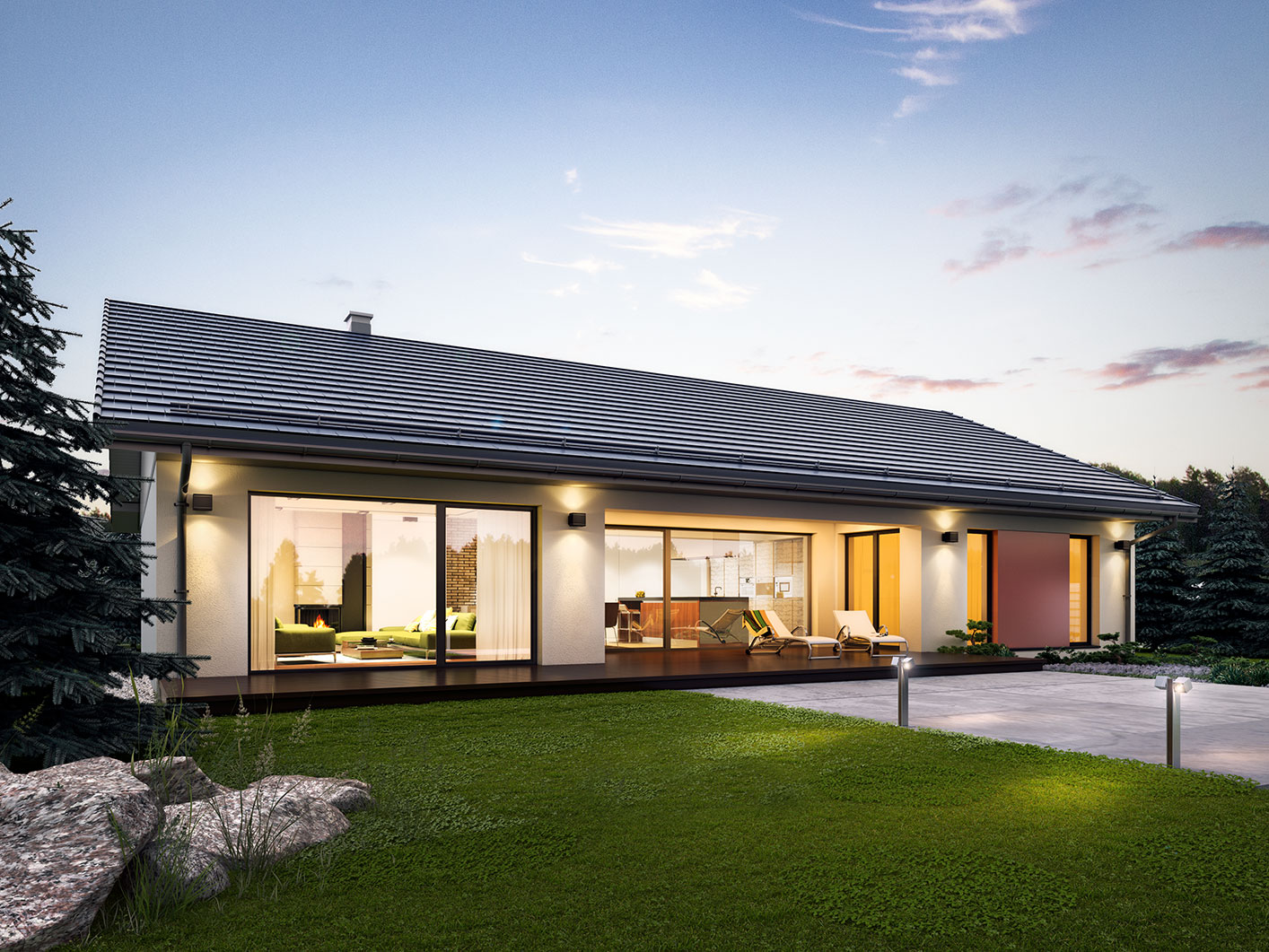 Projekt Otis to propozycja domu w stylu nowoczesnej stodoły. W prostej, prostokątnej bryle przykrytej dwuspadowym dachem zawiera się nowoczesne wnętrze, przestronne i efektowne. Otwarta przestrzeń dzienna z dużymi przeszkleniami posiada wyjścia na duży, zadaszony taras. Dom ten ma 4 wygodne sypialnie, największa z nich ma również wyjście na taras. Przestronne pokoje pozwalają na wiele aranżacji wnętrz. Jest to jeden z niewielu projektów posiadających taras dostępny zarówno z salonu, jadalni jak i kuchni.