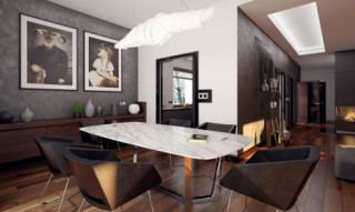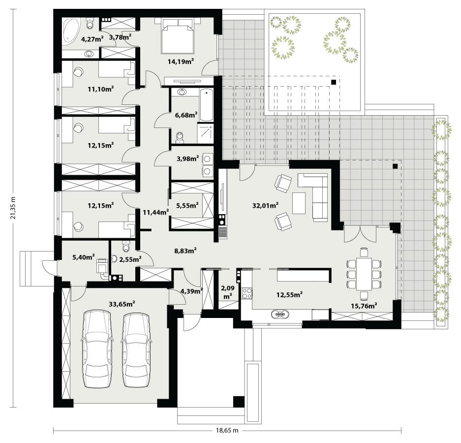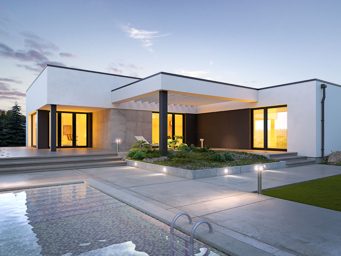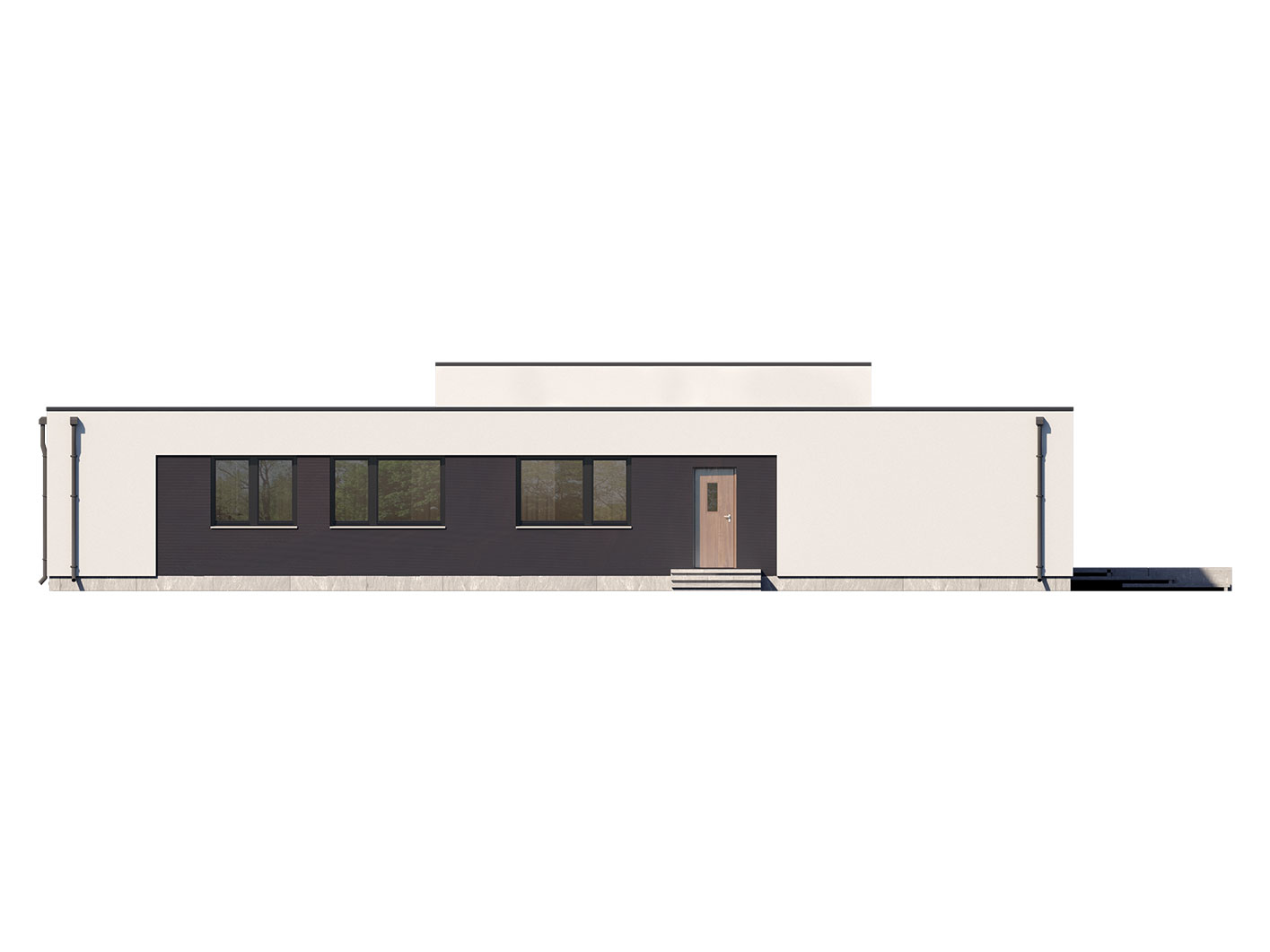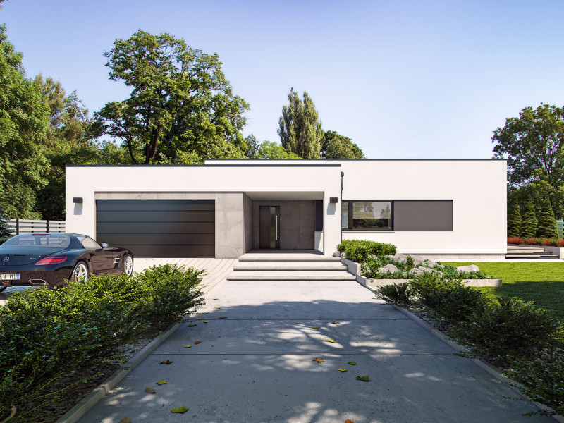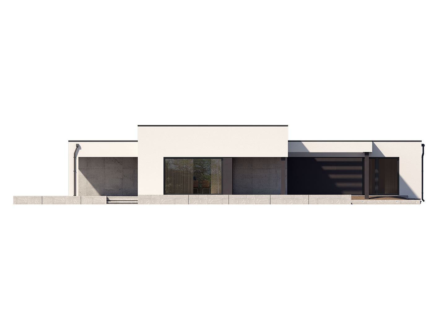 Artus 2 to nowoczesny, parterowy dom jednorodzinny, niepodpiwniczony z dwustanowiskowym garażem nawiązujący klimatem do nadmorskich, kalifornijskich willi. Swoim pełnym programem funkcjonalnym zapewnia komfort i wygodę 5-osobowej rodzinie. Przestronną część dzienną tworzy głównie salon połączony z jadalnią, otwierający się na ogród poprzez ogromne przeszklenia. Zewnętrznym odbiciem salonu są rozległe tarasy, całkowicie zadaszone lub przykryte drewnianymi belkami w formie pergoli. W części dziennej zaprojektowano również kuchnię ze spiżarnią i wc. Część nocna to 4 wygodne sypialnie, łazienka, pralnia oraz garderoba. Dodatkowo główna sypialnia posiada własną garderobę i łazienkę. W domu zaprojektowano dużą kotłownię dostępną z garażu, której parametry pozwalają na montaż kotła na każdy rodzaj paliwa, w tym na paliwo stałe. Ten optymalny i ciekawy program funkcjonalny został ujęty w prostej bryle na rzucie litery T. Atutem projektu jest jego prostota zarówno w układzie pomieszczeń, jak i w rozwiązaniach elewacji, gdzie elegancki, nowoczesny styl osiągnięto poprzez klasyczne, proste ale szlachetne materiały oraz delikatny, subtelny detal.