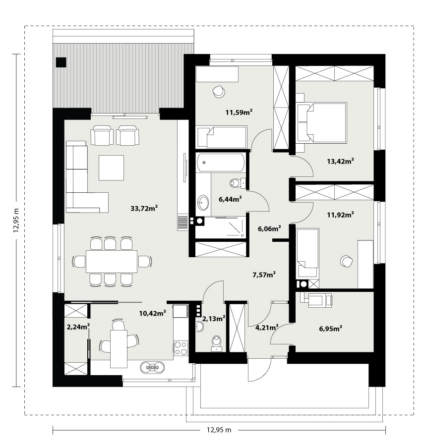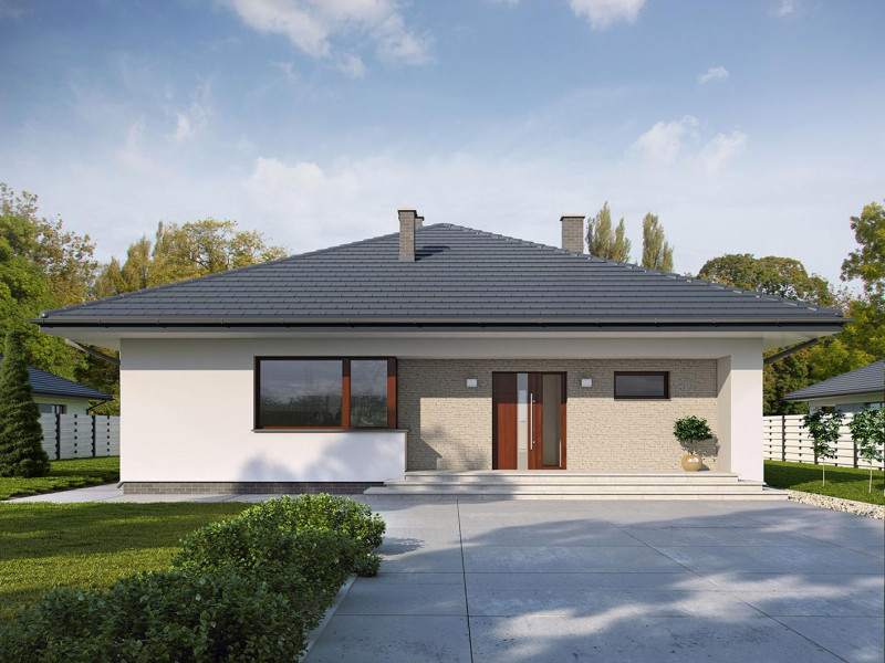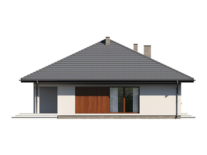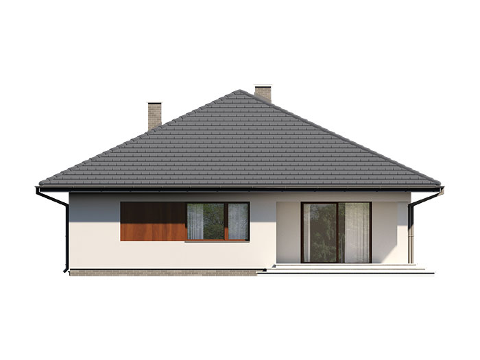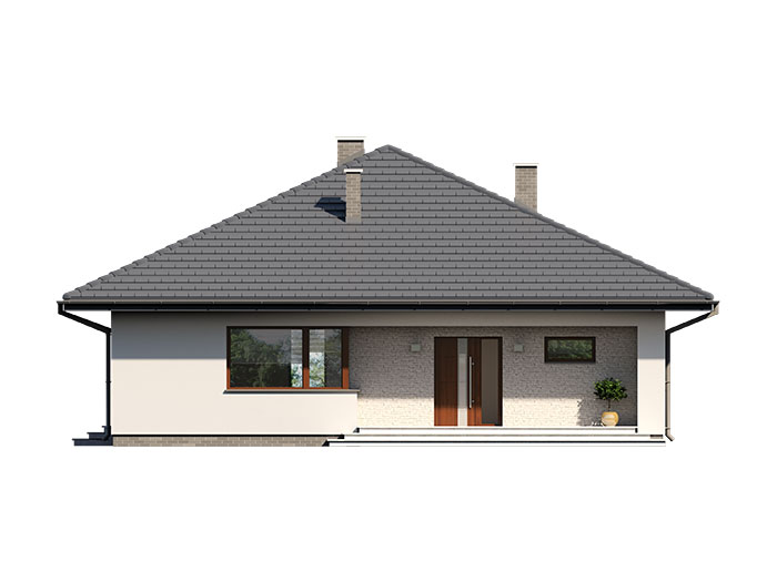 Irysek 4 to projekt parterowego domu jednorodzinnego zapewniającego optymalne potrzeby 4-osobowej rodziny. Jest to dom bardzo funkcjonalny z wyraźnym podziałem na strefy. Przestronna część dzienna to proste i klasyczne połączenie salonu, jadalni i kuchni ze spiżarnią, zaś strefa intymna składa się z 3 sypialni i łazienki. Dom posiada duży taras umożliwiający spędzanie czasu na świeżym powietrzu niezależnie od warunków pogodowych. Wejście do domu jest przez praktyczny podcień chroniący przed deszczem i słońcem. Z samego wiatrołapu prowadzi wejście do dużej kotłowni. Bryła budynku zamknięta jest na rzucie kwadratu, przykrytego czterospadowym dachem. Taka forma budynku czyni go prostym w budowie i tanim w eksploatacji.