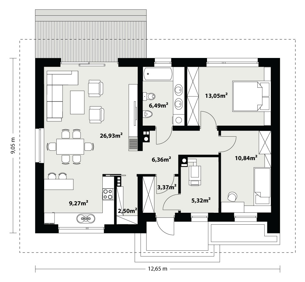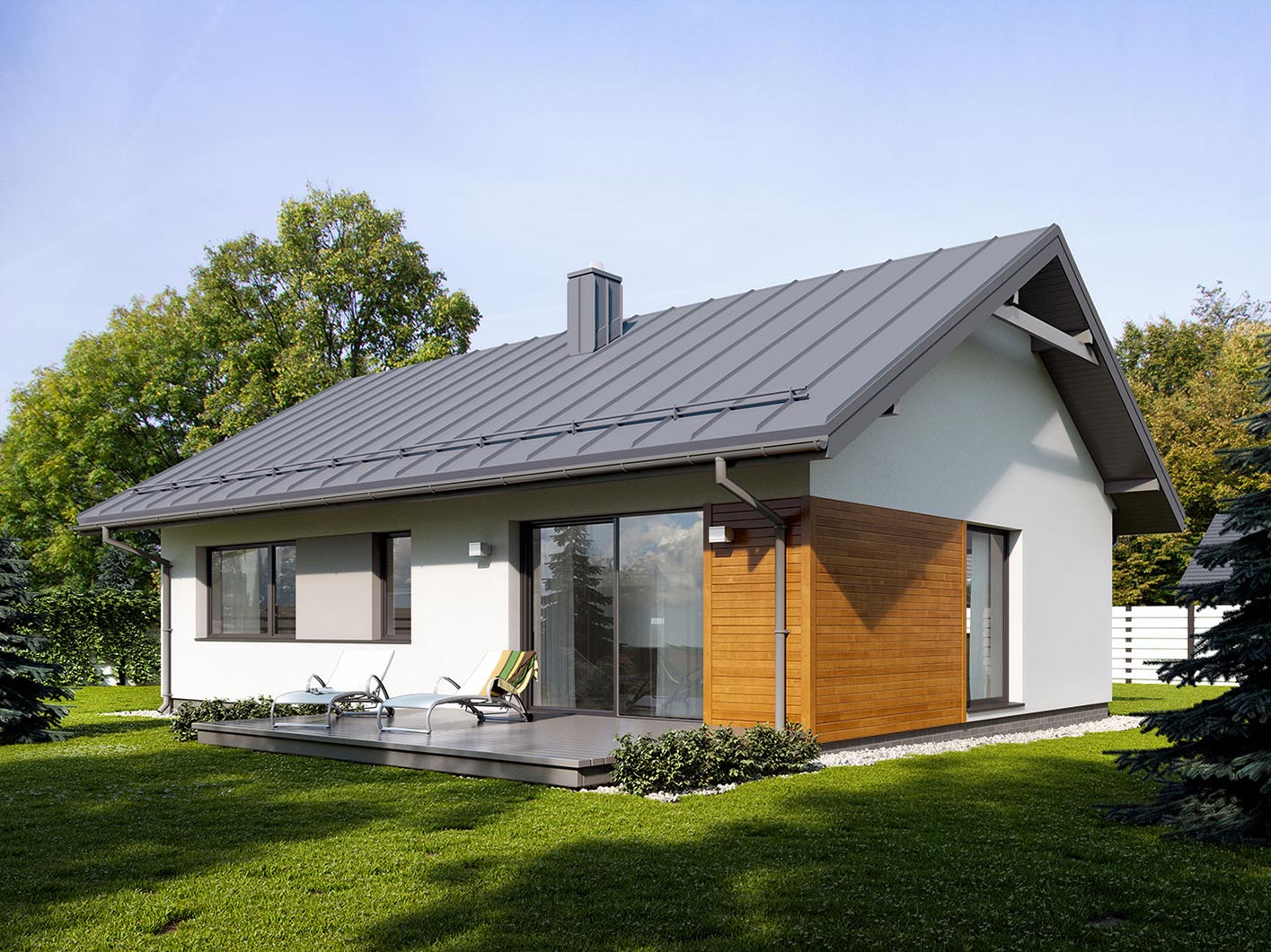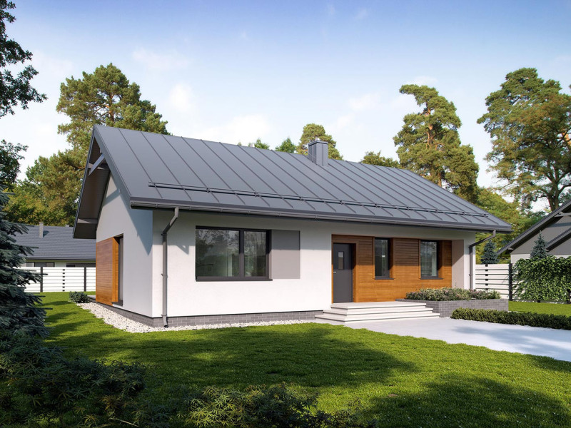Loro to mały jednorodzinny dom parterowy zaprojektowany z myślą o 3-osobowej rodzinie, która marzy o prostym, ale nowoczesnym domu. Wnętrze, pomimo niewielkiej powierzchni, połączeniu kuchni z jadalnią i salonem i otwarciu poprzez liczne przeszklenia na zewnątrz sprawia wrażenie przestronności i lekkości. Ta prosta, klasyczna bryła z nowoczesnymi elewacjami, wewnątrz posiada tradycyjny podział na część dzienną i nocną oraz gospodarczą z kotłownią na paliwo stałe.