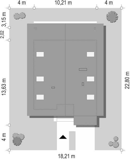 Mimo niewielkiego rozmiaru, jest bardzo wygodny w użytkowaniu i oferuje przestronne wnętrze. Atutem projektu jest duży salon otwarty na kuchnię. Centralnie umieszczony kominek i wyeksponowane schody, tworzą niezwykle atrakcyjną przestrzeń.