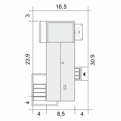 Dom ma atrakcyjny wygląd, ale dzięki prostej formie jest tani w budowie. Pokoje mają wielkość zapewniającą komfort, ale nie są przesadnie duże. Zgodnie z oczekiwaniami wielu inwestorów, zaprojektowano pomieszczenia pomocnicze, takie jak spiżarnia, garderoba i pralnia.