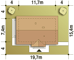 Niewątpliwym atutem projektu jest łazienka na poddaszu z której dostępna jest pralnia oraz duży strych mogący pełnić funkcję np. suszarni. Nie zapomniano również o pomieszczeniu gospodarczym z wyjściem na ogród, oraz garderobie. Prosta bryła i nieskomplikowana konstrukcja, sprawią że dom będzie tani i łatwy w budowie.