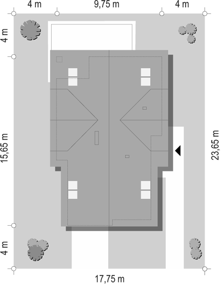 Uwaga! Dokumentacja Projektowa nie zawiera elementów małej architektury takich jak: donice, podesty, altany, grille ogrodowe, murki, pergole, a także innych elementów wizualizacji, takich jak: garaże i wiaty wolnostojące, drogi, podjazdy, ogrodzenia, baseny itp.