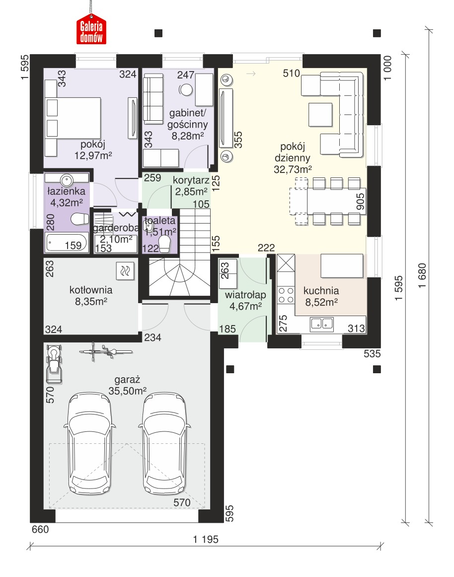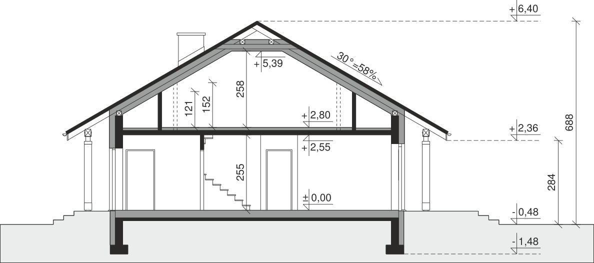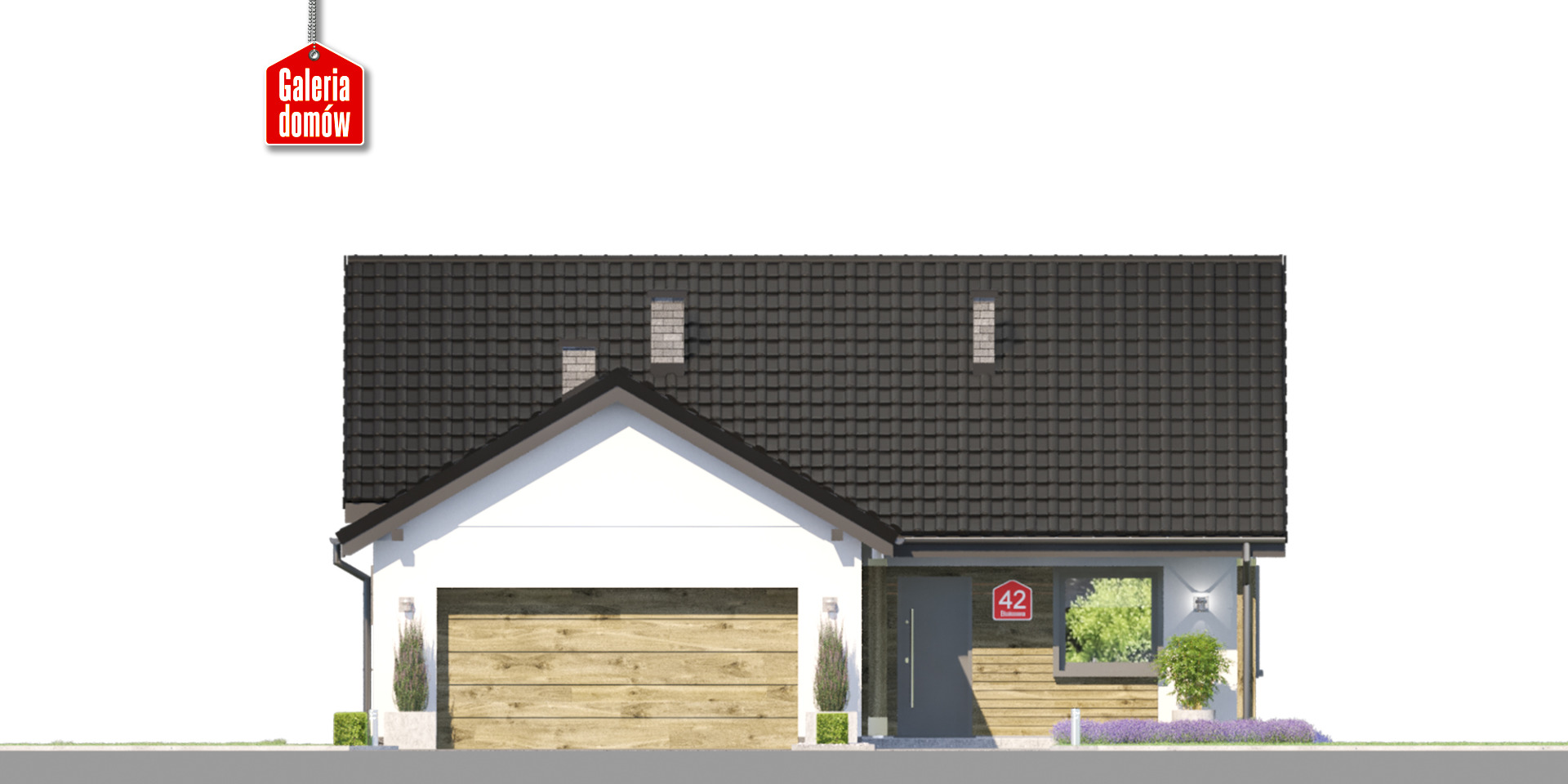 Dom przy Bukowej 42 to budynek jednorodzinny z poddaszem użytkowym. Powierzchnia wynosi 125 m². W projekcie przewidziano podwójny garaż. Wnętrze jest bogato urządzone i gwarantuje komfort i swobodę odpoczynku. Na parterze przewidziano otwarty pokój dzienny, połączony z kuchnią oraz 2 pokoje, łazienkę, toaletę i garderobę. Za garażem znajduje się duża kotłownia. Poddasze mieści 2 pokoje, łazienkę oraz garderobę. Dom zaprojektowano w technologii tradycyjnej, murowanej. Dokumentacja opracowana wg warunków technicznych WT 2021. Prosty, szybki i tani w budowie dom dla 4-5 osobowej rodziny.