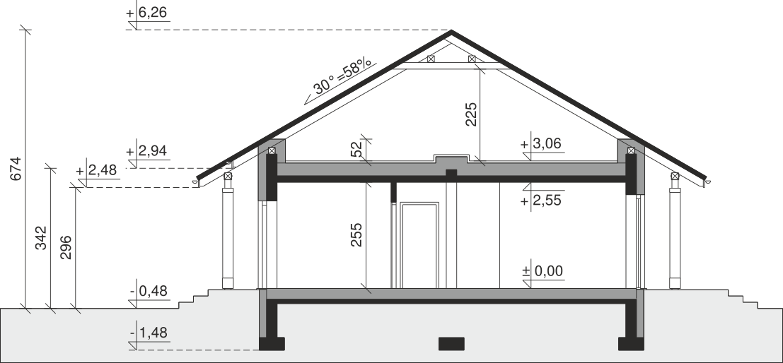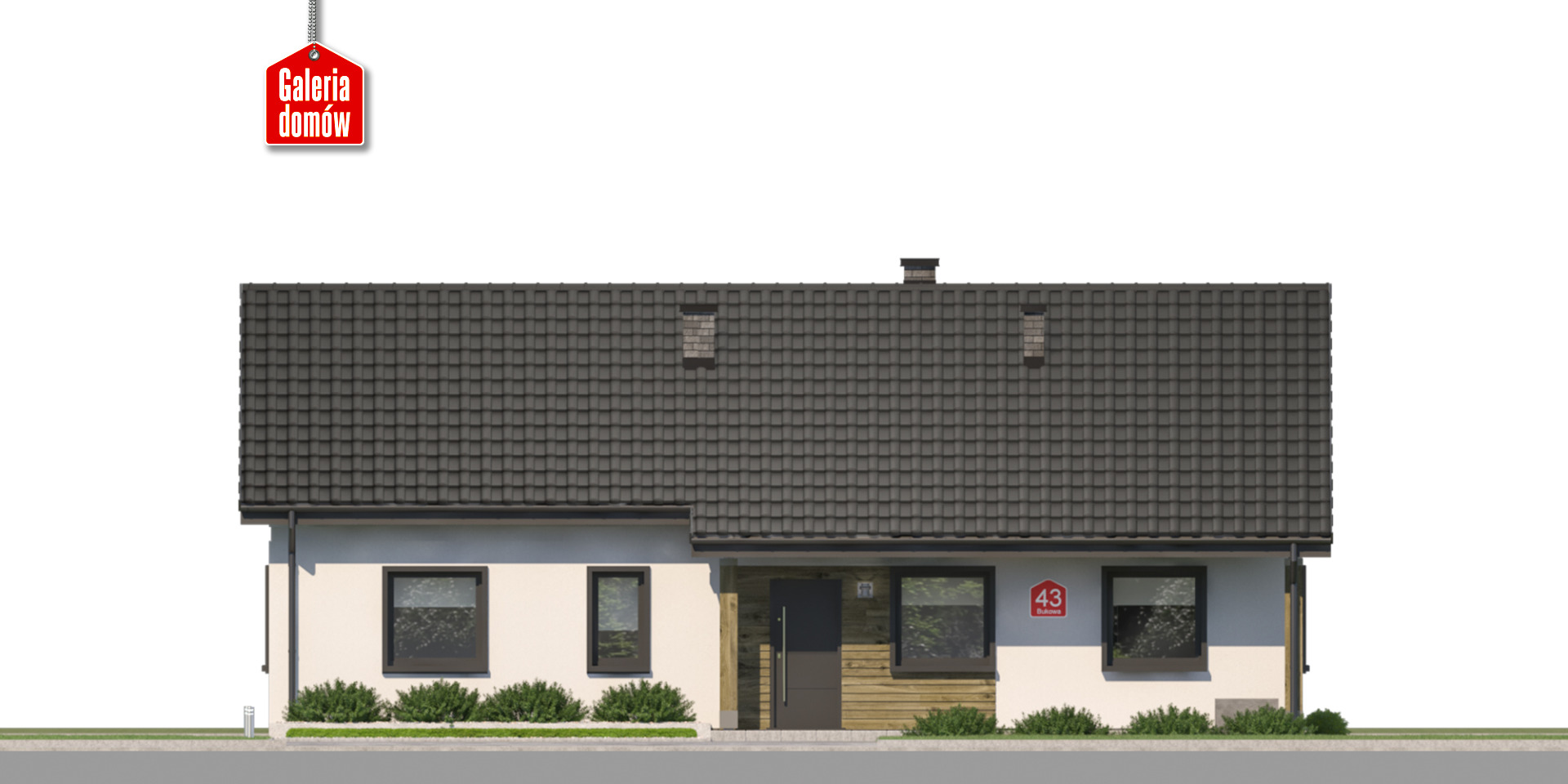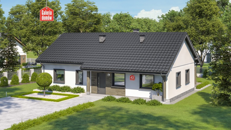 Dom przy Bukowej 43 do energooszczędny budynek parterowy bez garażu. Powierzchnia użytkowa wynosi 100 m². Wykonany w technologii tradycyjnej, murowanej i dostosowany do warunków technicznych 2021. Wnętrze mieści słoneczną część dzienną (salon+kuchnia) oraz 4 sypialnie, łazienkę i dodatkową toaletę. W projekcie przewidziano sporą kotłownię, z miejscem na pralnię. Elewacja budynku, wykonana z wykorzystaniem naturalnego drewna oddaje modny i lubiany styl we współczesnej architekturze. Projekt, dzięki przemyślanej konstrukcji, jest oszczędny w budowie oraz ekonomiczny w użytkowaniu. Doskonały wariant dla większej rodziny.