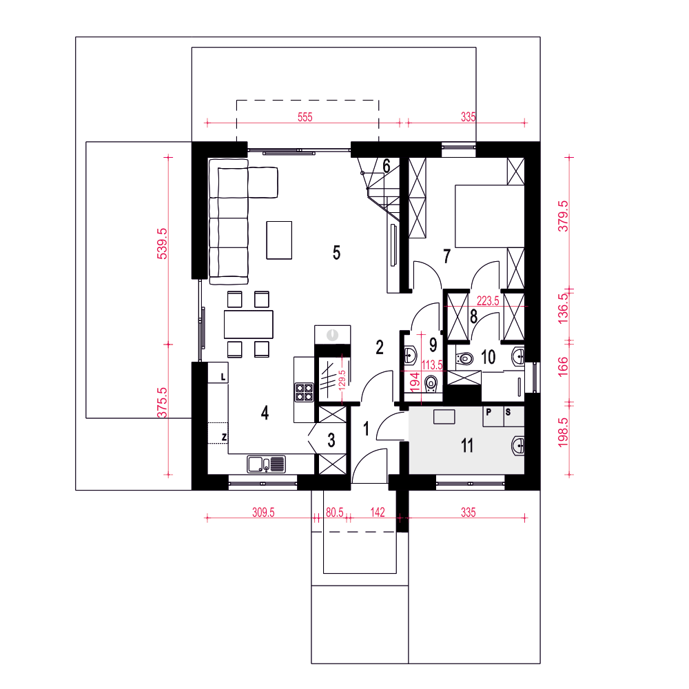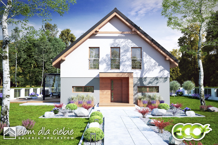 Projekt Nowalia to propozycja dla osób posiadających węższą działkę. Budynek został zaprojektowany ma planie kwadratu. Prosta forma budynku oraz dwuspadowy dach wpłynie pozytywnie na koszty budowy. Jest to dom wolnostojący z poddaszem użytkowym. Strefa dzienna na parterze składa się z: salonu z kominkiem, jadalni, otwartej kuchni ze spiżarnią. Na parterze przewidziano również sypialnię z łazienką, wiatrołap, hol z garderobą WC i kotłownię z piecem CO. Na poddasze wchodzi się schodami z salonu. Tu zaprojektowano hol oraz trzy sypialnie i salon kąpielowy. Dom nadaje się dla 4-5 osobowej rodziny. Architektura zewnętrzna łączy w sobie elementy tradycyjne i nowoczesne.