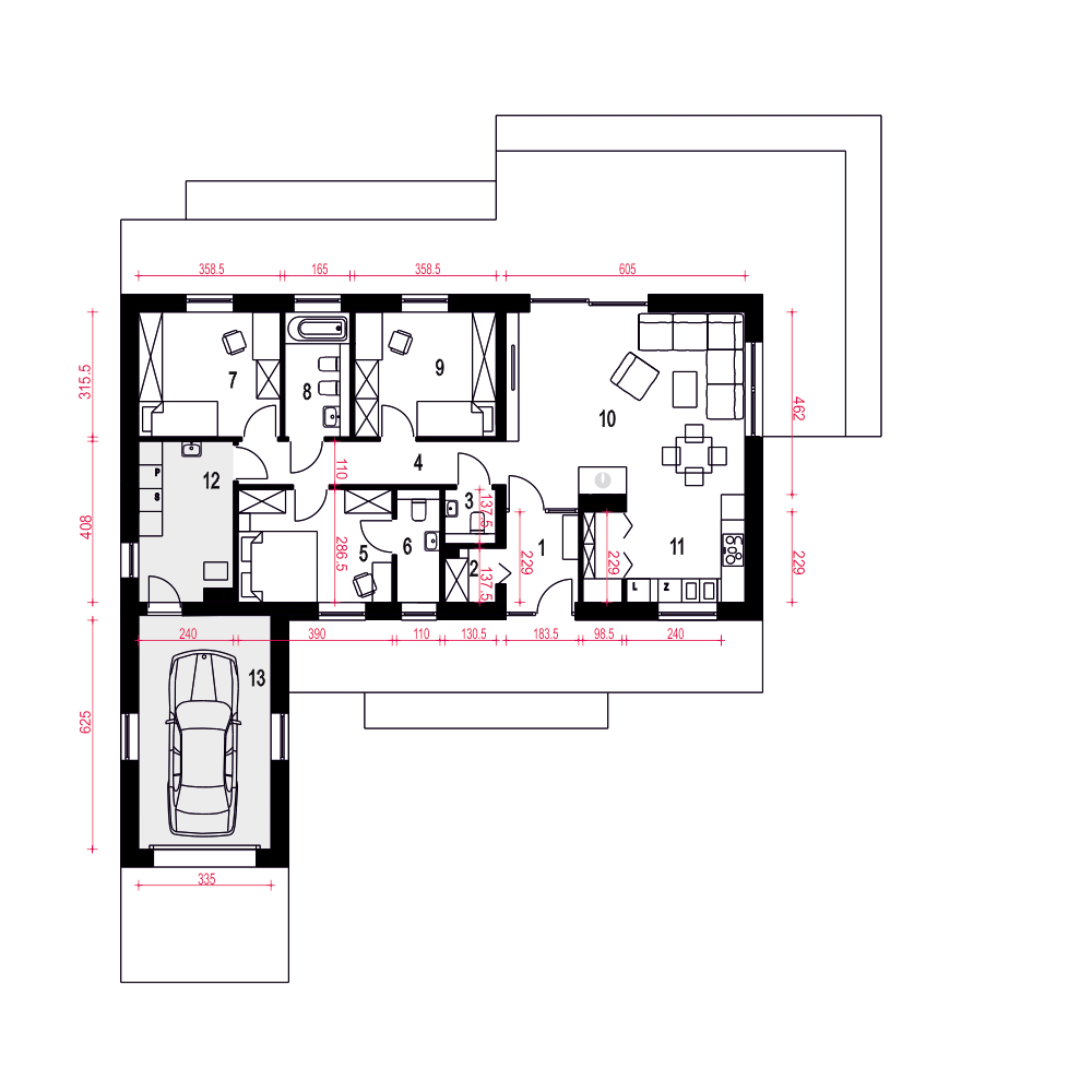 Żurawinka II to nowoczesna architektura małego domu. Dom ten przeznaczony jest dla 4-osobowej rodziny i zaprojektowany został w technologii murowanej z prefabrykowanymi wiązarami dachowymi. Bryła domu przekryta jest stromym dachem dwuspadowym. Funkcja Żurawinka II zawiera w sobie salon z kominkiem, kuchnię ze spiżarnią oraz miejsce (jadalnia) na stół rodzinny. Hol prowadzi do części domu z dwoma pojedynczymi sypialniami rozdzielonymi wspólną wygodną łazienką oraz sypialni podwójnej z łazienką indywidualną. Na końcu korytarza znajduje się pomieszczenie techniczne – pralnia. Z boku domu znajduje się jednostanowiskowy garaż.