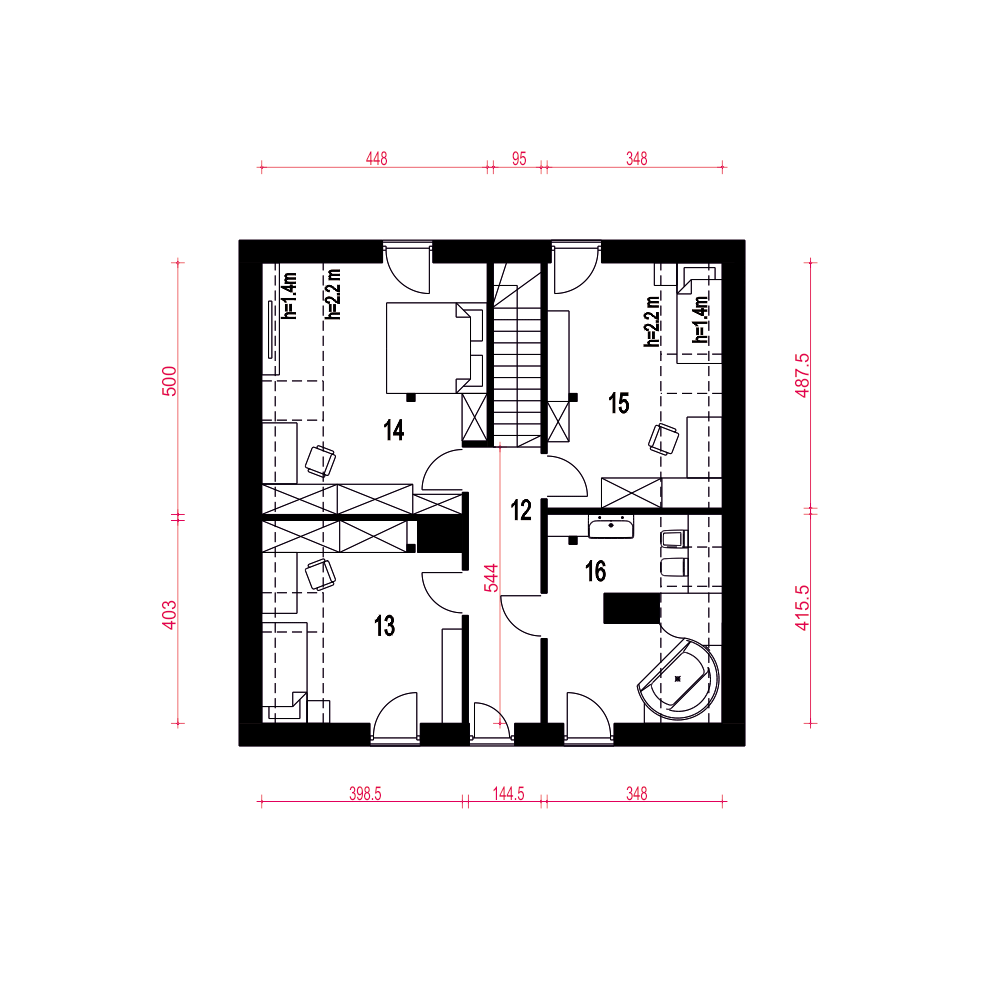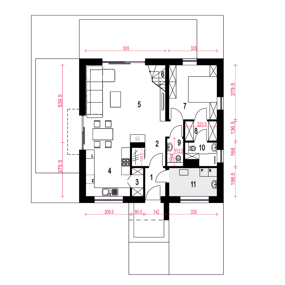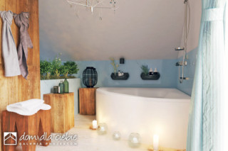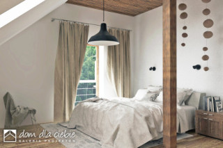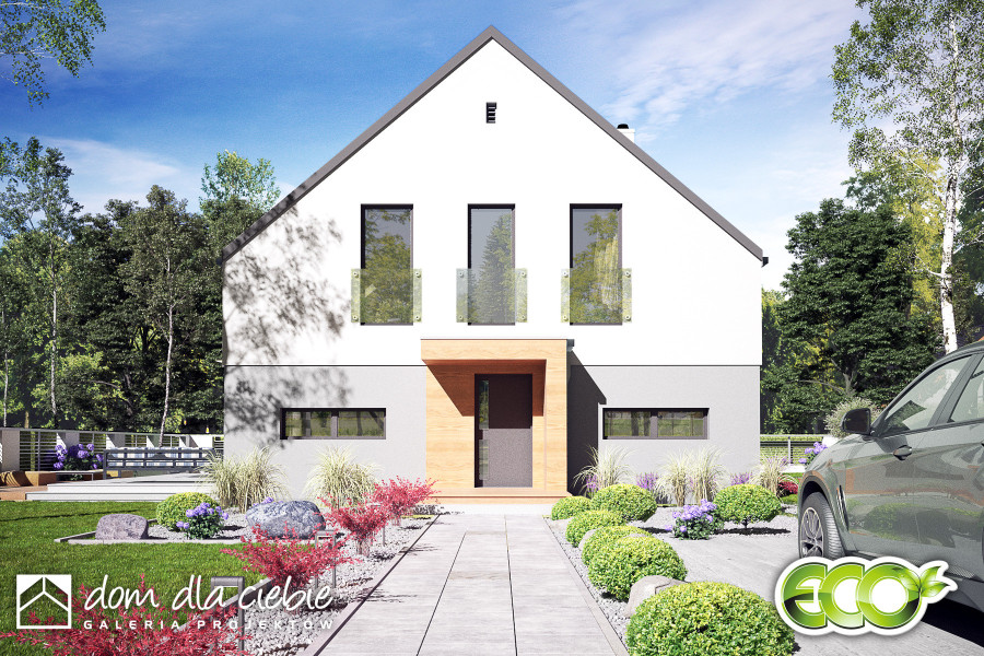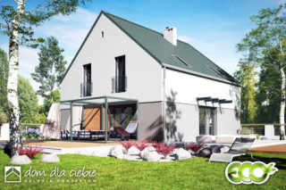 Projekt Nowalia Mode B to propozycja dla osób posiadających węższą działkę. Budynek został zaprojektowany ma planie kwadratu. Prosta forma budynku oraz dwuspadowy dach wpłynie pozytywnie na koszty budowy. Jest to dom wolnostojący z poddaszem użytkowym. Strefa dzienna na parterze składa się z: salonu z kominkiem, jadalni, otwartej kuchni ze spiżarnią. Na parterze przewidziano również sypialnię z łazienką, wiatrołap, hol z garderobą WC i kotłownię z piecem CO. Na poddasze wchodzi się schodami z salonu. Tu zaprojektowano hol oraz trzy sypialnie i salon kąpielowy. Dom nadaje się dla 4-5 osobowej rodziny. Architektura zewnętrzna łączy w sobie elementy tradycyjne i nowoczesne.