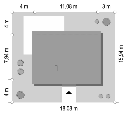 Rozległy parterowy budynek wolnostojący z czterospadowym dachem. Dom idealny do zamieszkania przez rodzinę wielopokoleniową.