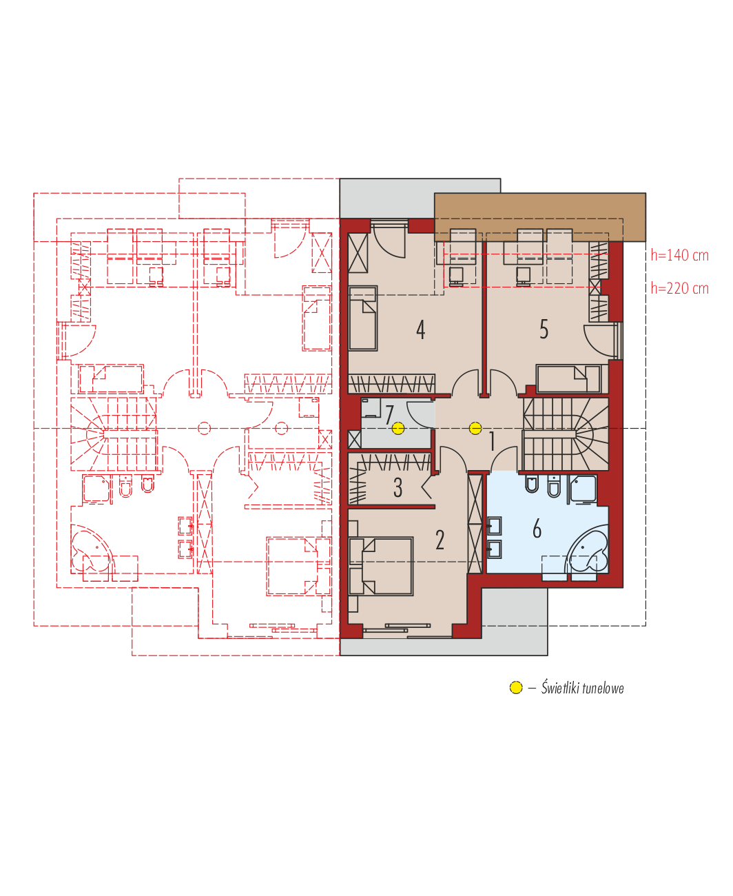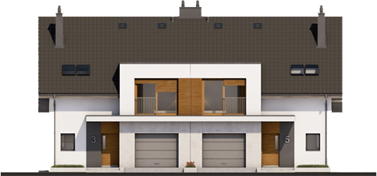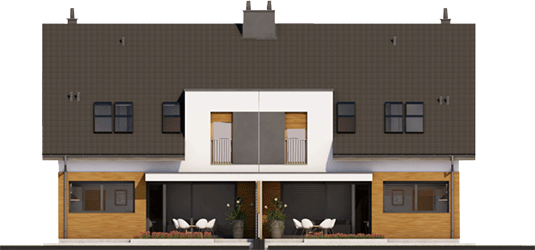Powierzchnie i pozostałe dane liczbowe podano dla pojedynczego domu (połowa bliźniaka). Koszty budowy dotyczą pojedynczego domu (połowa bliźniaka). Cena dokumentacji technicznej obejmuje obydwa domy.Charakterystyka: Dom jednorodzinny w zabudowie bliźniaczej, parterowy z poddaszem użytkowym, niepodpiwniczony, z garażem jednostanowiskowymPrzeznaczenie: Dom dla 3-4-osobowej rodziny Technologia i konstrukcja:Ściany zewnętrzne: murowane, dwuwarstwowe, beton komórkowy firmy H+H 24 cm, ocieplenie styropian Termo Organika 20 cmŚciany wewnętrzne: nośne i działowe murowane, beton komórkowy firmy H+H 24 cm i 12 cmStrop: międzypiętrowy gęstożebrowy TerivaDach: konstrukcja drewniana, ocieplenie wełna mineralna Isover 30 cm, dachówka ceramiczna firmy RöbenInne: schody wewnętrzne drewniane Rozwiązania instalacyjne:Ogrzewanie: kocioł gazowy kondensacyjny firmy Viessmann, rozprowadzenie ciepła: grzejniki firmy PurmoWentylacja: grawitacyjna Wykończenie:Elewacje: tynk cienkowarstwowy mineralny w kolorze białym TO-PA001 i szarym TO-GY011 z palety firmy Termo Organika, okładzina - system elewacji wentylowanej: deski włóknocementowe Cedral Click Wood np. w kolorze brązowym C30, okładzina z płyt imitujących beton Stolarka: drewniana, PVC lub aluminiowa, drzwi tarasowe podnoszono-przesuwne typu HS, rolety zewnętrzne QuadBox oraz obudowy żaluzji wewnętrznych QuadBox Interior firmy BeClever, drzwi wejściowe i brama garażowa firmy Hörmann Okna połaciowe: rozwiązania technologiczne i wyłaz dachowy firmy VELUX, świetliki dachowe firmy VELUX Pobierz ekspercki poradnik VELUX i dowiedz się jak wybrać okna dachowe Otoczenie: kostka betonowa i płyty tarasowe firmy Libet, system tarasowy ProDeck - deska kompozytowa Terra w kolorze orzech Wersje - zapytaj o dostępność: - Wiktor G2 (bliźniak) - podobny układ funkcji, z garażem dwustanowiskowym - odbicie lustrzane do każdej wersji Wszystkie wersje domów możliwe w dwóch standardach/wariantach instalacyjnych: - ENERGO: piec gazowy kondensacyjny, grzejniki, wentylacja grawitacyjna - ENERGO PLUS: pompa ciepła, ogrzewanie podłogowe, wentylacja mechaniczna, dodatkowo system solarny lub panele fotowoltaiczneIstnieją techniczne możliwości wykonania zmian: - podpiwniczenia budynku - wykonania domu dwulokalowego - wykonania zabudowy szeregowej - wykonania budynku w technologii szkieletowej - dokonania zmian funkcjonalnych wg indywidualnych wymagań