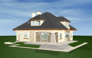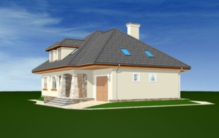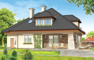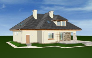 Projekt domu Agnieszka 2 to wariantowa wersja projektu Agnieszka. Dom został pomniejszony, zaplanowano w nim pojedynczy garaż. Budynek zyskał nową szatę zewnętrzną: zmienione lukarny dachowe, podcień wejściowy z dodatkowymi słupami z przyporami. Fragmenty ścian i cokół zostały obłożone kamieniem, dobrze komponującym się z gładkimi powierzchniami ścian i dachem. Wnętrze domu Agnieszka 2 mieści na parterze duży salon z jadalnią, połączony z holem i obszerną kuchnią z wyspą. Na parterze zaprojektowano dodatkowy pokój z odrębną łazienką oraz garaż z kotłownią. W projekcie Agnieszka 2, na poddaszu zaplanowano cztery sypialnie i dwie łazienki. Sypialnia rodziców ma własną łazienkę i garderobę. Nad garażem mieści się strych - do dowolnego zagospodarowania. Projekt domu Agnieszka 2 dostępny jest w wersjach do wyboru na olej opałowy lub z instalacją na kocioł gazowy, a także w wersji odbicia lustrzanego. Zapraszamy do zapoznania się z pełną ofertą pracowni MGProjekt: projekt domu Agnieszka, projekt domu Agnieszka 3, projekt domu Agnieszka 3 B