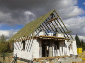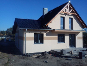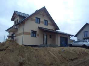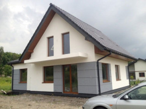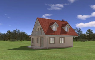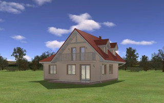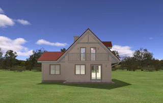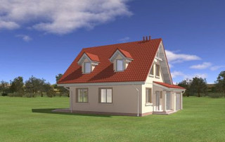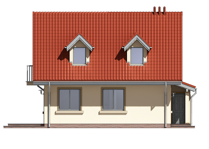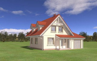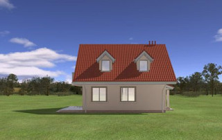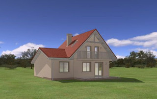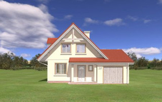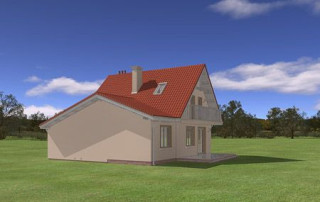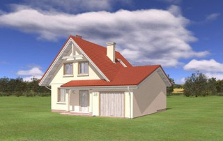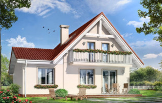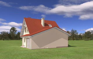 Projekt domu Alicja to propozycja dla rodziny 4- 5-osobowej. Dom parterowy, z poddaszem użytkowym, przykryty dwuspadowymi dachami, z dobudowanym garażem. Domek Alicja zaprojektowano w spokojnej stylistyce z przenikającymi się tradycyjnymi i nowoczesnymi detalami. Zwarta bryła budynku z dobudowanym garażem, została ozdobiona lukarnami, oraz balkonem w elewacji ogrodowej. We wnętrzu domu zaplanowano na parterze połączony hol, oraz salon tworzące otwartą przestrzeń dzienną. Otwarta kuchnia łączy się z aneksem jadalnym dodatkowo powiększając wnętrze. Centralnie usytuowane schody na poddasze, oraz ściana kominkowo-telewizyjna stanowią główną oś podziału przestrzeni. Na parterze przewidziano dodatkowy pokój, mogący służyć jako gabinet lub dodatkowa sypialnia. Z dużej łazienki z natryskiem wydzielono aneks techniczny z miejscem na kocioł c.o. Na poddaszu zaprojektowano trzy sypialnie, oraz łazienkę. Pracownia posiada także wersję odbicia lustrzanego projektu domu Alicja oraz wariant projekt domu Alicja wariant B