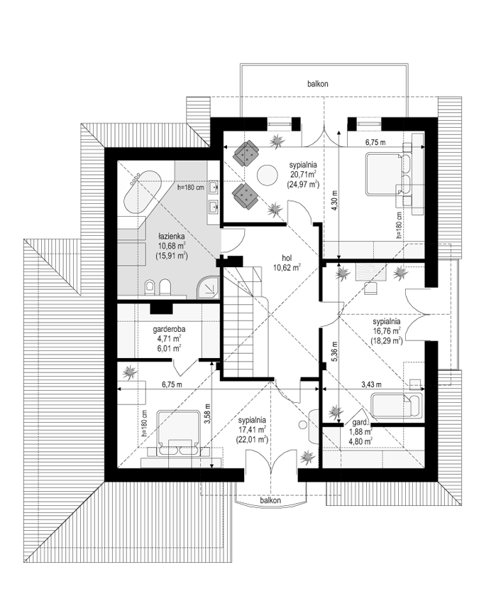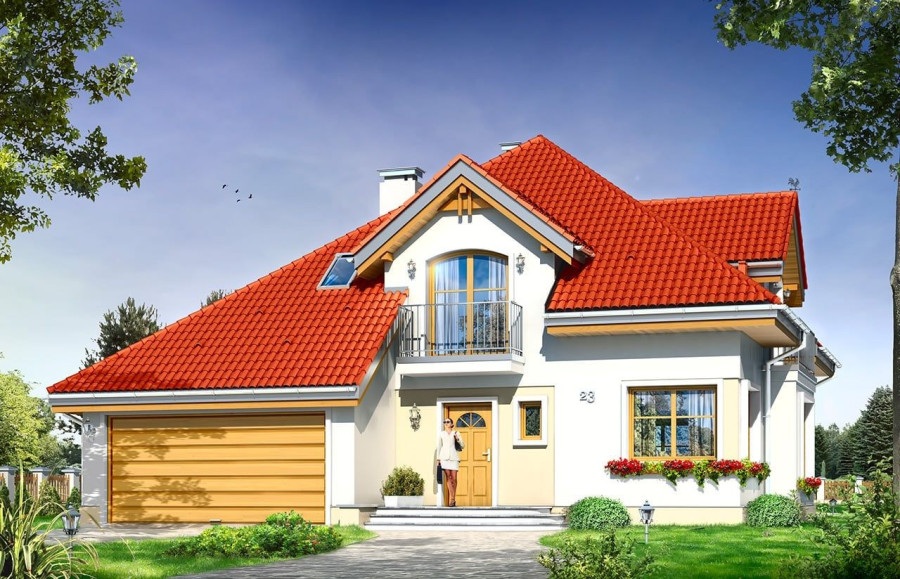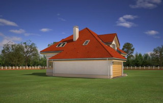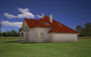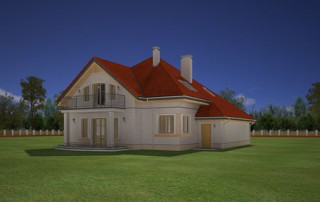Projekt domu Amadeusz to reprezentacyjna willa jednorodzinna dla 4- 5-osobowej rodziny, parterowy z poddaszem użytkowym. Projekt domu Amadeusz architektura Dom jednorodzinny Amadeusz ma w sobie wszystko, czego można wymagać od wygodnego domostwa: zgrabną niebanalną sylwetkę i funkcjonalne obszerne wnętrze. Projekt Amadeusz jest jednocześnie prosty konstrukcyjnie, a przez to łatwy w budowie. Ponadto sylwetka domu Amadeusz zbudowana została na planie kwadratu i jest optymalna pod względem energooszczędności. Architektonicznie dom Amadeusz nawiązuje do przedwojennych willi, ale zastosowano w nim współczesny detal. Projekt Amadeusz wnętrze We wnętrzu gotowego projektu Amadeusz, na parterze zaprojektowano bardzo ładny salon połączony z aneksem jadalnym i holem z reprezentacyjnymi schodami, kuchnię z narożnym oknem i spiżarnią, oraz dodatkowy pokój z łazienką mogący służyć jako gabinet, ale też jako dodatkowa sypialnia. Na parterze projektu Amadeusz zmieszczono też dwustanowiskowy wygodny garaż i dużą kotłownię. Na poddaszu projektu Amadeusz mieszczą się trzy przestronne sypialnie – każda ze swoim balkonikiem i garderobami. Prócz sypialni zaprojektowano też piękną ładnie oświetloną łazienkę, którą można oczywiście podzielić na dwa osobne pomieszczenia – jeśli rodzice chcę mieć osobne wc z natryskiem. Nad poddaszem znajduje się niewielki strych. Autorska pracownia architektoniczna MG Projekt dysponuje również projektem domku Amadeusz w odbiciu lustrzanym.