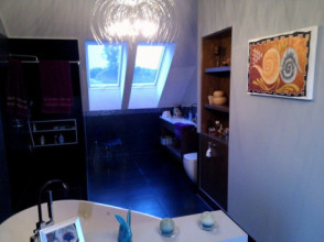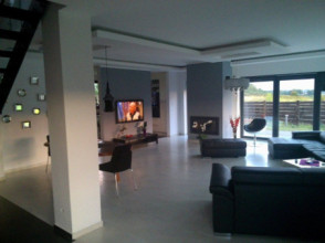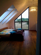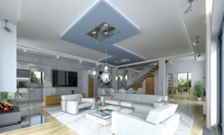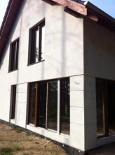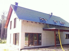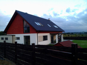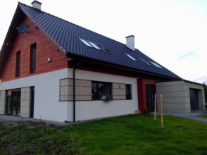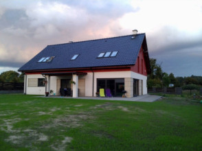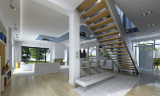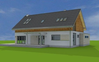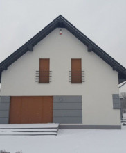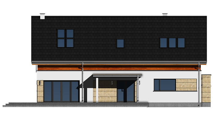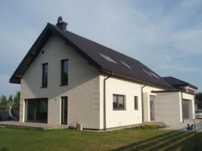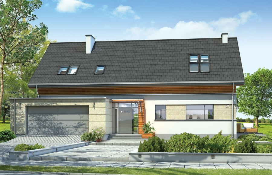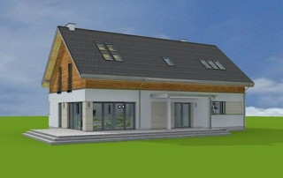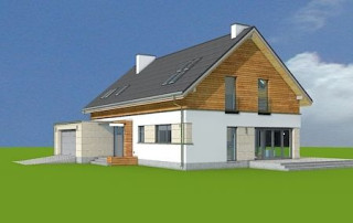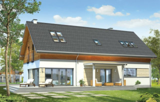 Projekt domu Gala to wygodna, nowoczesna willa dla czterech-sześciu osób. Bryłę budynku zaprojektowano jako parterową z poddaszem użytkowym, o kształcie prostokąta przekrytego dwuspadowym dachem, z dodanymi parterowymi dobudówkami garażu, wejścia, czy podcienia przy tarasie ogrodowym. Projekt domu Gala łączy w sobie tradycyjną formę z awangardowymi, nowoczesnymi rozwiązaniami zastosowanych materiałów, płaskich dachów, czy dużych przeszkleń otwierających wnętrze na ogród. Dzięki takiej architekturze dom Gala dobrze się prezentuje zarówno wśród modnych miejskich willi, jak i na typowej polskiej wsi. Wnętrze domu na parterze przedzielono poprzecznym do bryły holem z jednobiegowymi, bardzo atrakcyjnymi wnętrzarsko schodami. Po jednej stronie zaplanowano część dzienną salonu, jadalni, kuchni, po drugiej - część gospodarczą z garażem i kotłownią, oraz dodatkowy pokój lub gabinet. Na poddaszu mieszczą się sypialnie dziecięce z garderobami i łazienką, oraz apartament rodziców własnym pokojem kąpielowym i garderobą. W ofercie pracowni znajduje się też wersja odbicia lustrzanego projektu domu Gala. Istnieje również możliwość zakupu projektu w standardzie NF40.