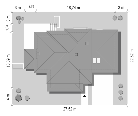 Projekt domu Mirabel Duolit proponuje budowę domu jednorodzinnego z dwoma lustrzanymi lokalami i samodzielnymi wejściami na stosunkowo wąskiej działce. Parterowy budynek z użytkowym poddaszem, bez garażu, oferuje dwa dwupoziomowe mieszkania dla czteroosobowych rodzin Pokoje dzienne znajdują się w nich na tyłach domu. Miejsce naprzeciwko schodów z praktycznym schowkiem, znalazła otwarta na pokój dzienny kuchnia. Powiększona ryzalitem z narożnym oknem, ma wygodny wgląd na otoczenie budynku, a przy tym łączy się przestrzennie z jadalnią i strefą relaksu. W projekcie domu Mirabel Duolit od frontu zaplanowano gabinet i łazienkę z kotłem gazowym przy wejściu. Pod dwuspadowym dachem o kalenicy równoległej do drogi dojazdowej rozlokowano trzy sypialnie z łazienką. Każda ma oryginalny kształt: dwie od frontu i od ogrodu dzięki płasko przekrytym lukarnom, a najmniejsza z nich - za sprawą narożnego okna ryzalitu w ścianie bocznej. Wpisanie pudełkowych elementów w tradycyjny zarys domu ze stromym dachem decyduje o nowoczesnym charakterze architektury. Budowę bliźniaczych segmentów na samodzielnych prawnie działkach umożliwia projekt domu Mirabel Duo.