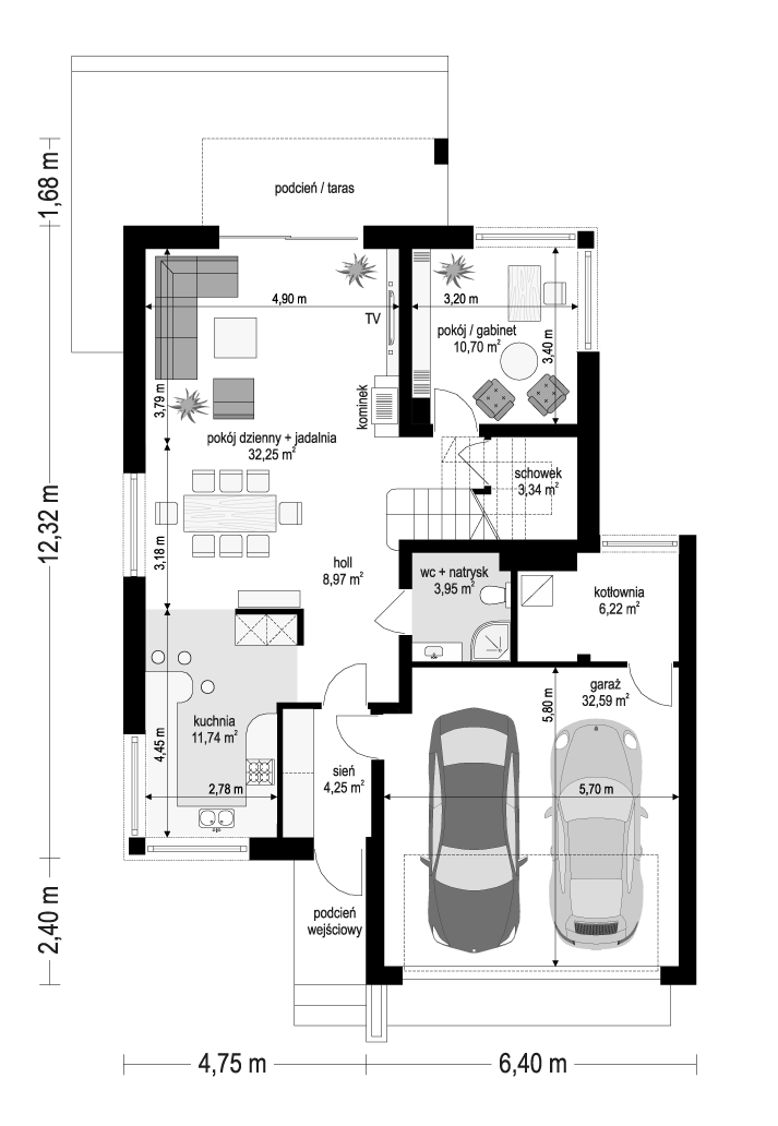 Wariant projektu ze zmienionym układem pomieszczeń, zmienioną stolarką okienną i drzwiową, doprojektowanymi schodami na strych, zmienionym kątem nachylenia dachu na 35 stopni, oraz zmienionym stropem nad piętrem na płytę żelbetową. Zapraszamy do zapoznania się z pełną ofertą pracowni MG Projekt: projekt domu Helios wariant C, projekt domu Helios wariant D, projekt domu Helios wariant E, projekt domu Helios wariant J, projekt domu Helios, projekt domu Helios wariant I, projekt domu Helios wariant B, projekt domu Helios wariant H.