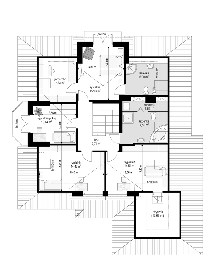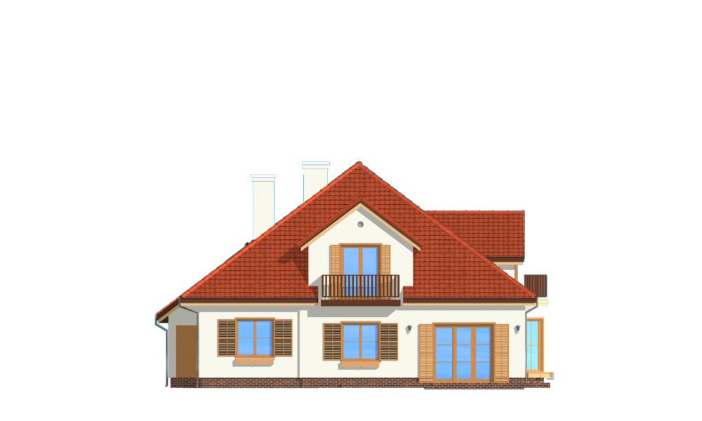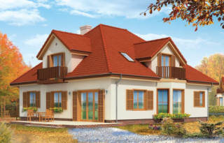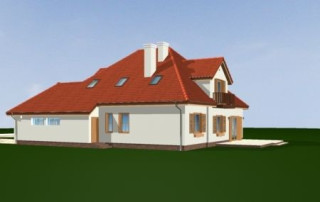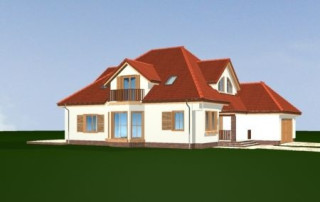 Projekt domu Hornówek 2 to wersja wariantowa projektu Hornówek. Przestronny i wygodny dom z dwustanowiskowym garażem wbudowanym w bryłę budynku, zaprojektowany dla 4- 5-osobowej rodziny. Dom doskonale nadaje się na wąską działkę. Zmiany, jakie wprowadzono w projekcie, w stosunku do wersji podstawowej: zaprojektowano duży wykusz w jadalni z nisko osadzonymi oknami, zlikwidowano tylną werandę - podcień, otwierając salon bezpośrednio na ogród przez szerokie przeszklone drzwi. Pracownia dysponuje także projektem domu Hornówek 2 w odbiciu lustrzanym.